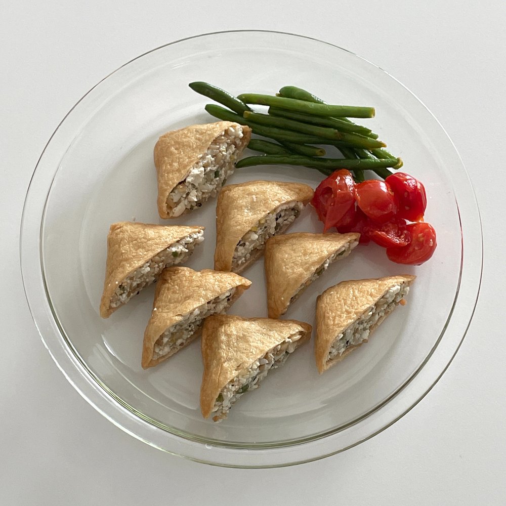 사실 유부초밥은 다이어트에 적합한 음식은 아니지만요. 밥 대신 두부로 속을 채우면, 칼로리와 탄수화물은 줄이고 단백질은 든든하게 채울 수 있어요.