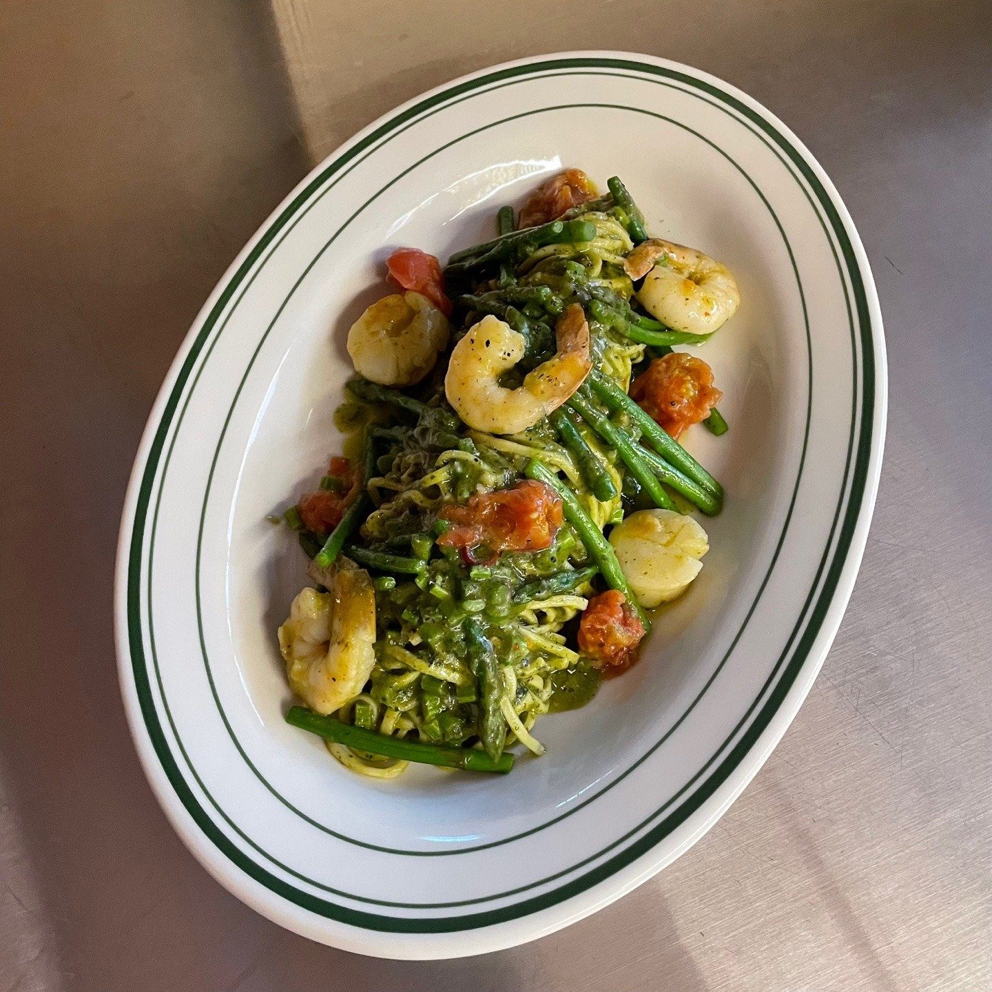 사계절의 맛과 향을 전하는 레스토랑, 마마리 다이닝이 선보이는 씨푸드 바질 페스토 파스타를 만나보세요. 큼직한 새우와 통통한 가리비가 들어가 근사한 비주얼과 풍부한 식감을 자랑해요.
