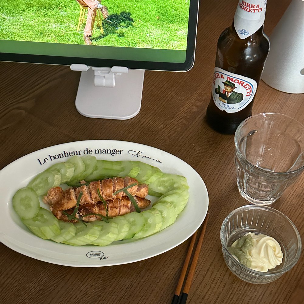 마요네즈에 와사비를 넣는게 킥이에요! 짭조름한 명란과 상큼한 오이 톡소면서도 고소한 와사비 마요 조합이 정말 술을 부르는 맛이에요. 저는 하인즈의 굿 마요네즈가 특히 더 고소해서 구운 명란과 어울리는 것 같아요. 맥주는 비라모레띠 논알콜을 추천 드려요. 논알콜인데도 맥주 마시는 느낌나고 부담없이 혼술하기에 딱입니다.