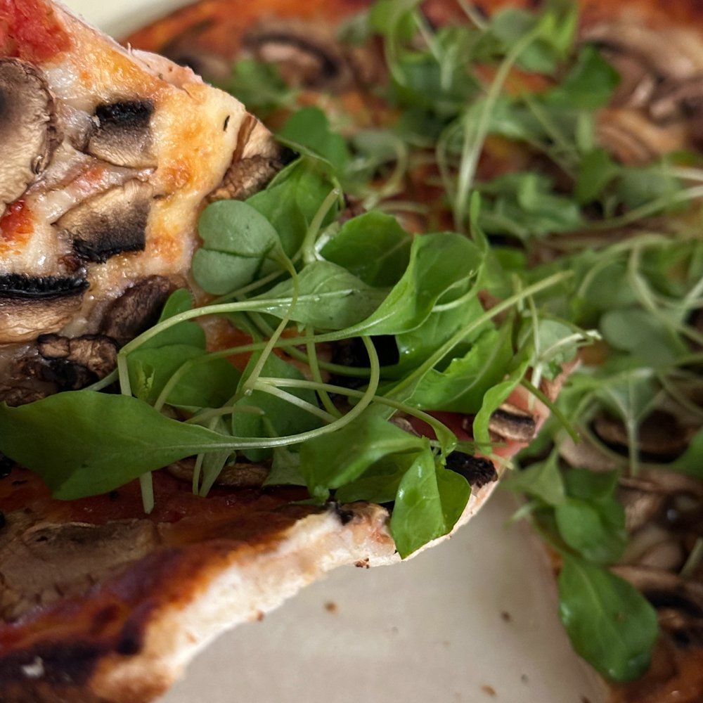 해동 없이 오븐에 바로 구웠어요. 이거 하나만으로도 충분하지만, 여기에 루꼴라를 듬뿍 올리니 루꼴라의 쌉싸름하면서도 오묘한 맛이 피자와 잘 어우러지더라고요.