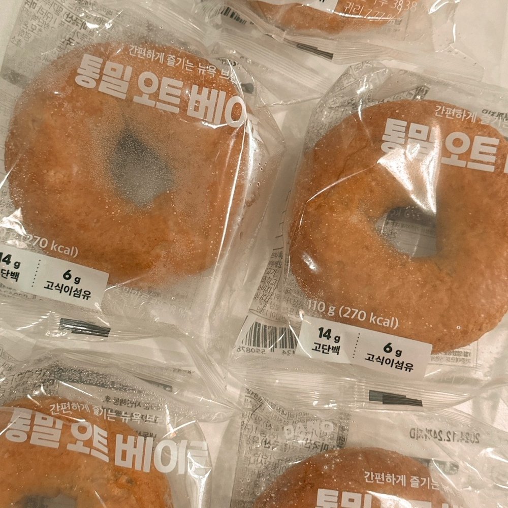 요 아이는 통밀가루와 귀리를 베이스로 사용해 1개당 단백질 14g을 자랑해요! 냉동상태로 1분 30초 돌려주면 쫄깃쫄깃한 베이글을 만나실 수 있답니다.