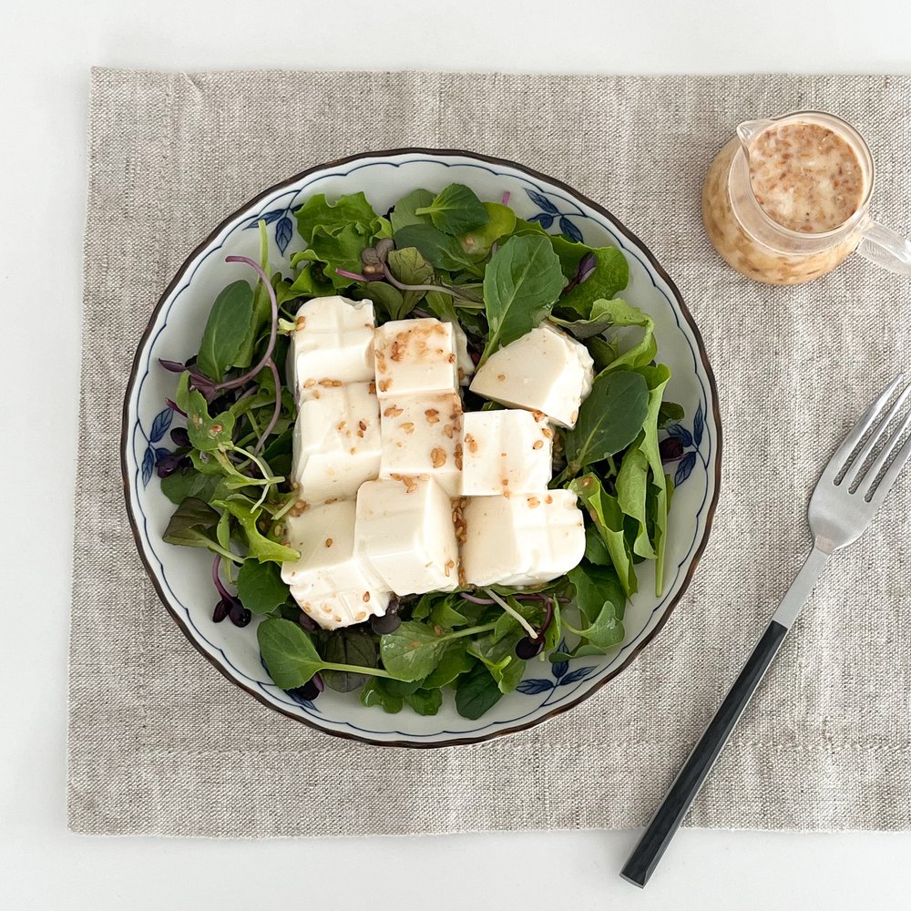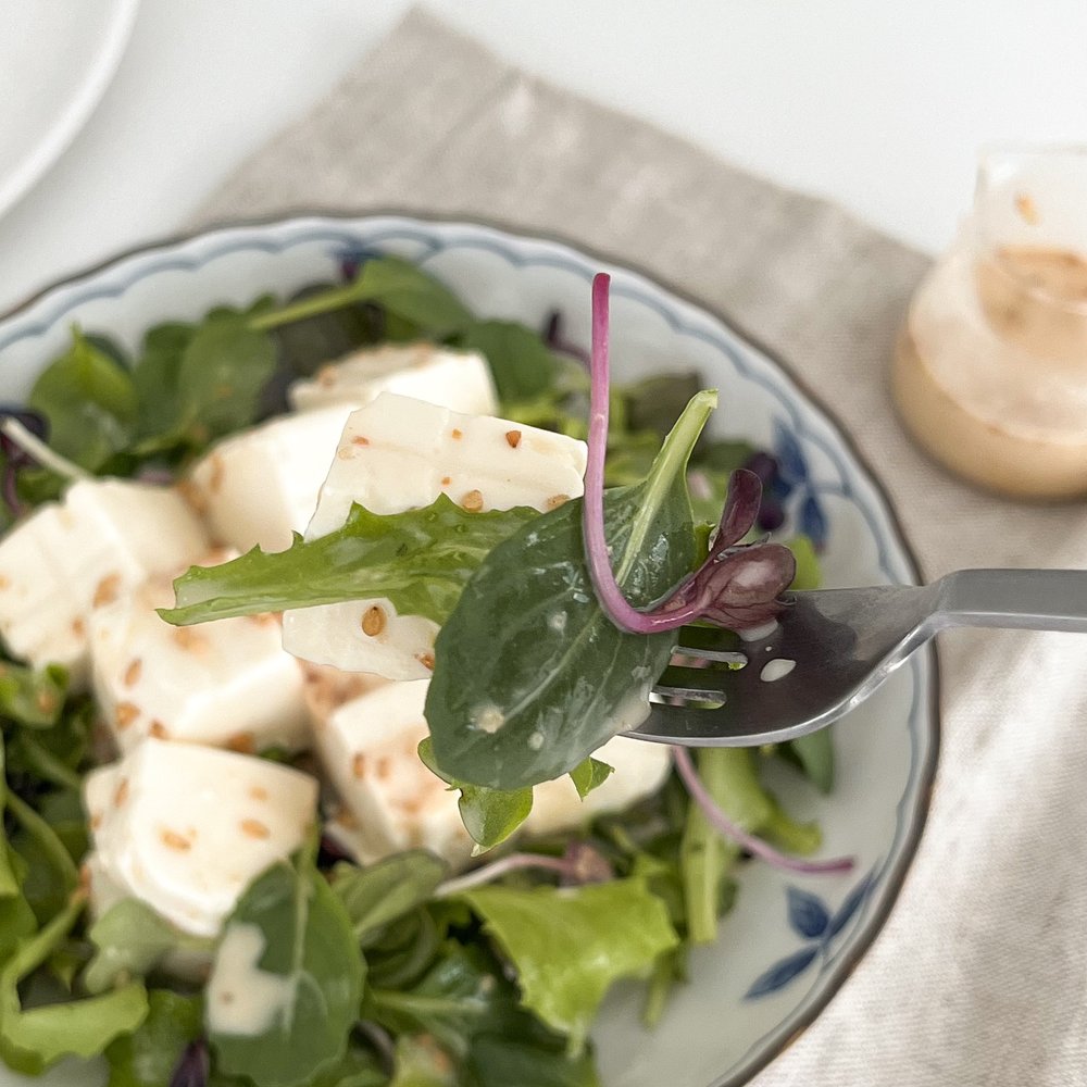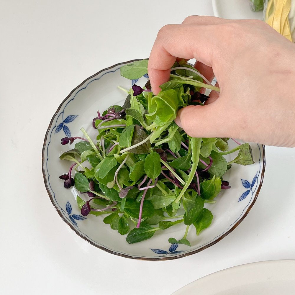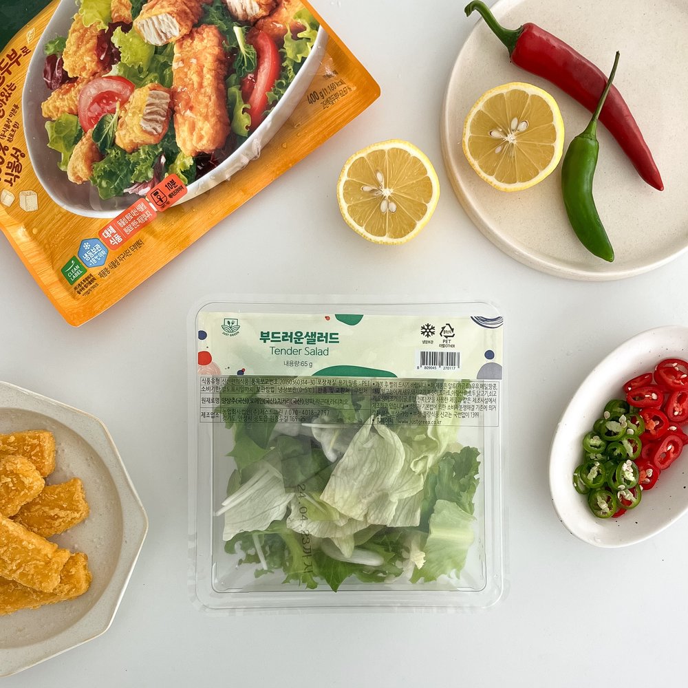 다른 샐러드 믹스도 물론 좋지만, 연두부 샐러드에는 초록색 색감과 귀여운 외모를 자랑하는 어린잎 채소 믹스가 가장 잘 어울린답니다!