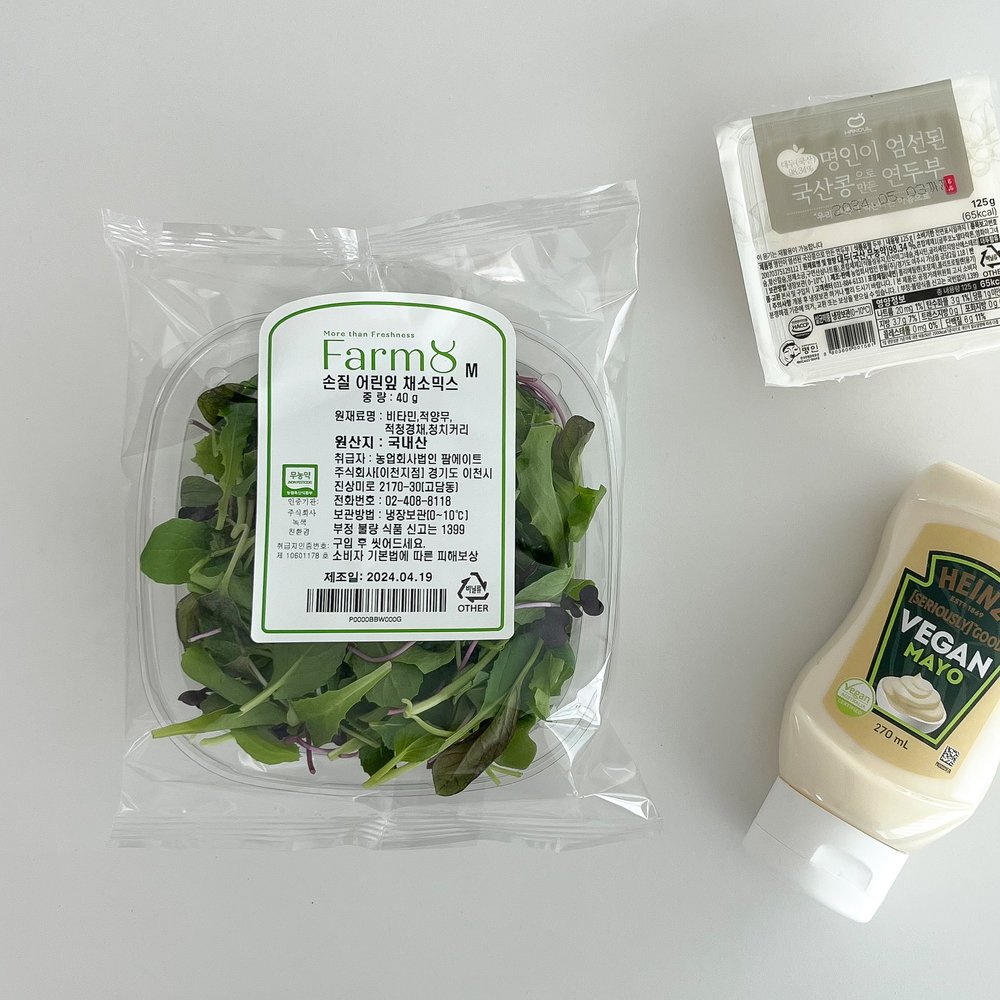 연두부는 생으로 먹을 수 있어 아침 간편식으로도, 간식이나 야식으로도 너무 좋더라고요! 하지만 연두부만 먹기엔 식감이 살짝 아쉽기 때문에 무농약 어린잎 채소 믹스로 아삭한 식감을 더해줄게요.