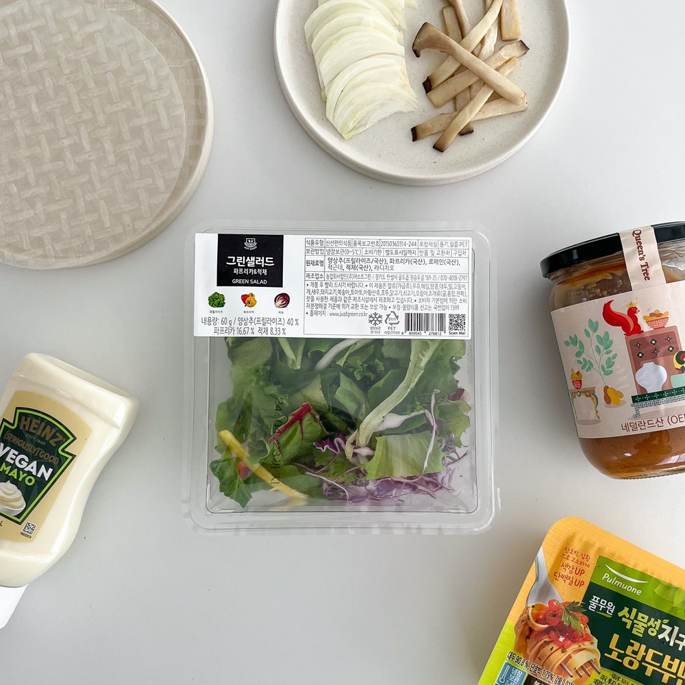 스프링롤에는 파프리카&적채 그린 샐러드를 사용하였어요.