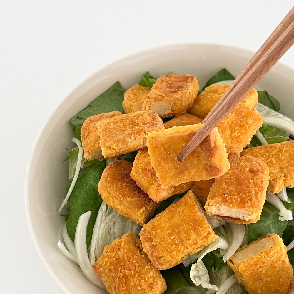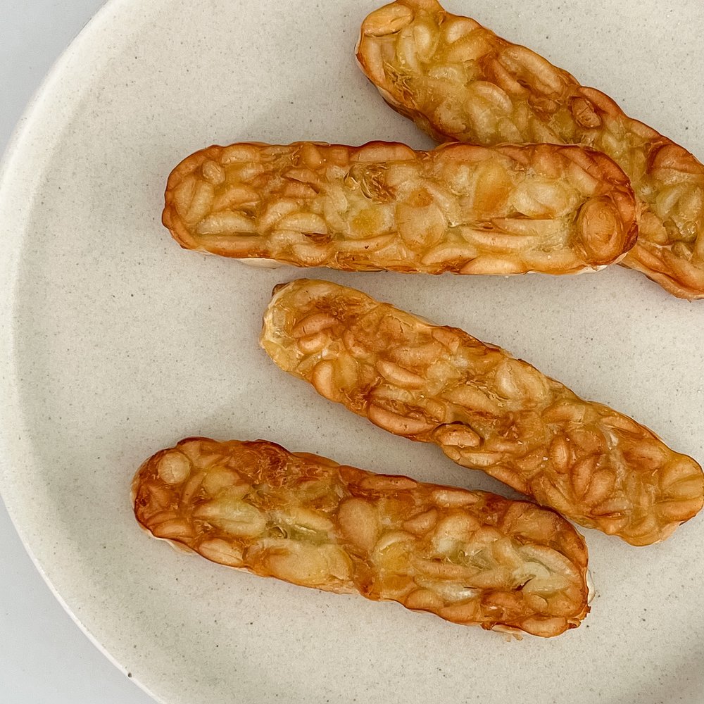 생소할 수 있는 재료인 템페는 콩을 발효시켜서 만든 인도네시아 대표 음식인데요! 우리나라의 청국장, 일본의 낫또와 비슷한 효능을 가지고 있지만 템페는 끈적이지 않고 단단한 식감을 가지고 있어 활용도가 정말 높아요. 특유의 꿉꿉한 발효 향이 어려운 분들은, 최대한 얇게 편 썰어 기름에 노릇노릇 튀기듯 구워보세요! 고소함만 가득 남아 금방 중독되실 거예요 : D