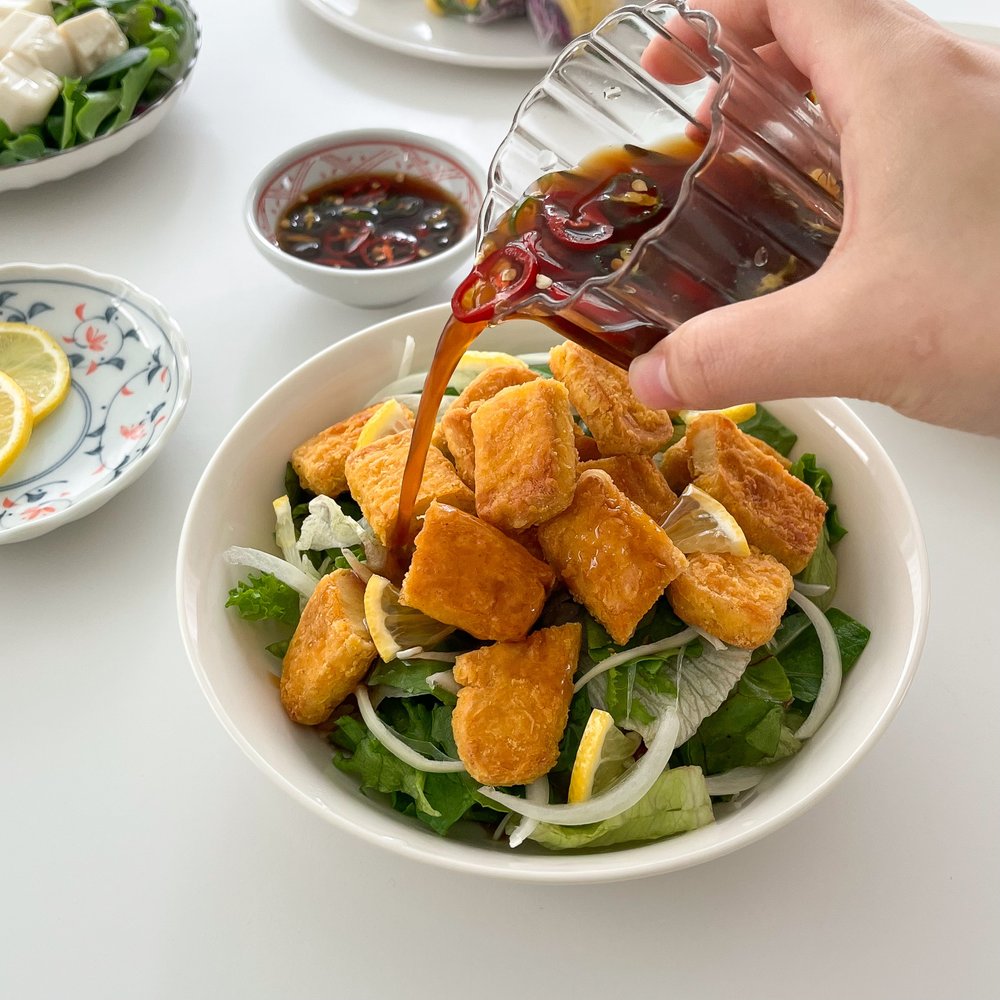 에어프라이어가 두부텐더를 맛있게 튀겨줄 동안, 양념장만 준비하면 이 레시피는 끝이에요~ 더운 여름, 요리 초보도 15분이면 완성할 수 있는, 배달보다 빠른 레시피랍니다! 하지만 맛은 배달음식 못지않으니 꼭 만들어보세요 : D
