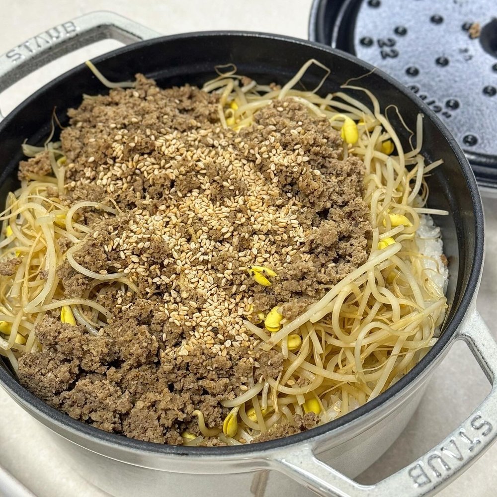콩나물은 저렴한 식재료이면서 다양한 음식을 만들 수 있어 자주 구매하게 되는 재료 중 하나입니다. 이번에는 소고기 고명을 듬뿍 올린 콩나물 솥밥을 준비해 봤어요-!