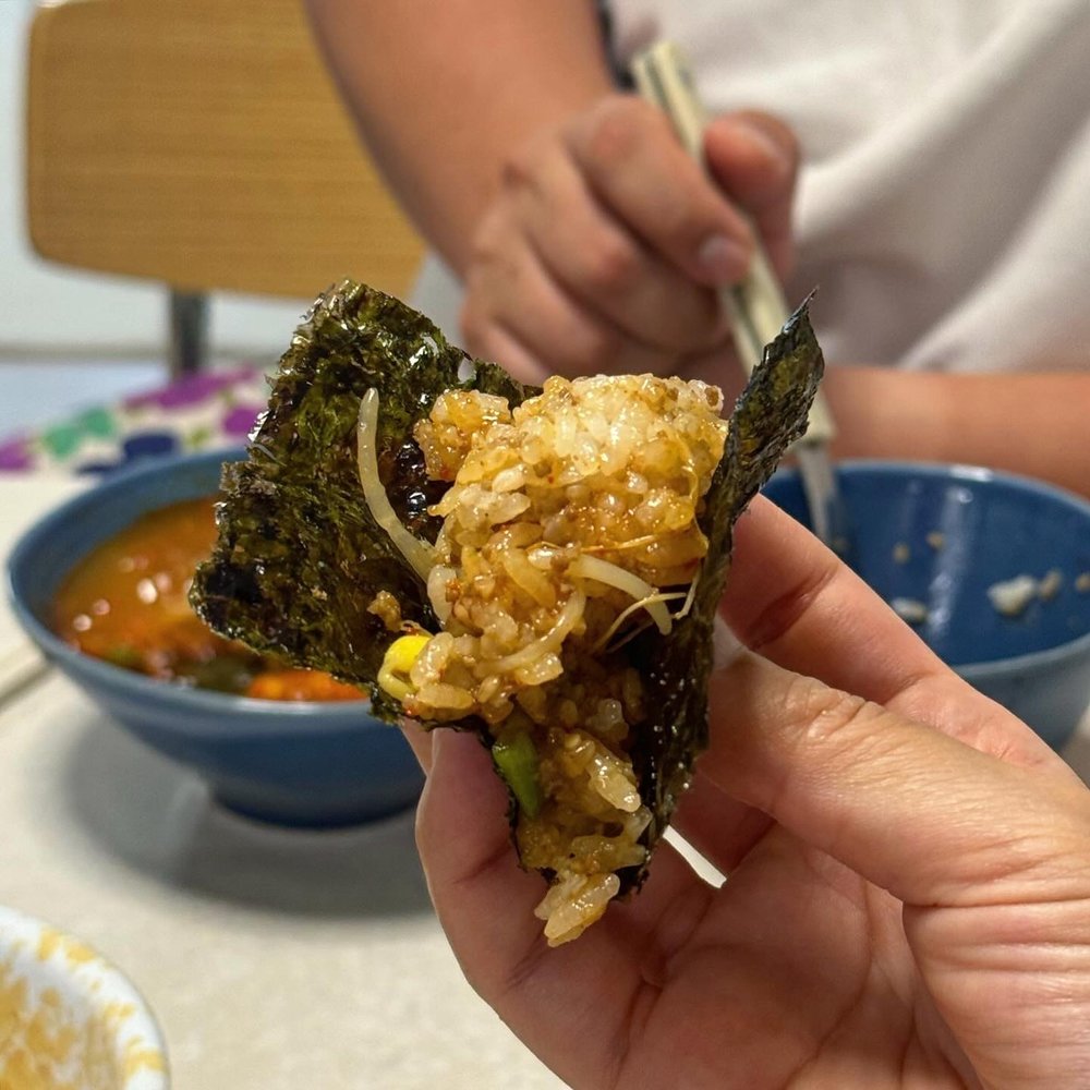 Tip: 김 끝부분엔 물을 묻히면 풀어지지 않아요.
