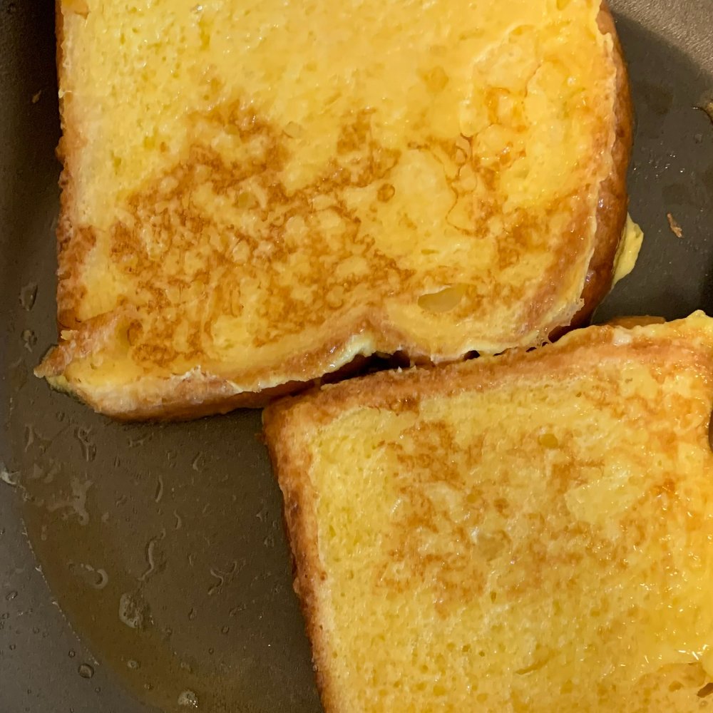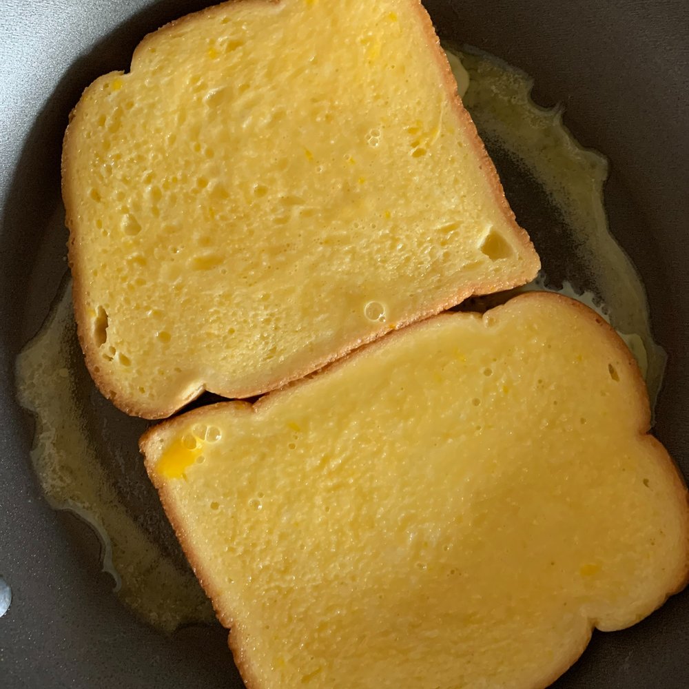4인 기준, 토스트 식빵 8장에 계란 4~5개와 적당량의 우유와 소금 한 꼬집, 설탕 2~3스푼을 넣어 계란 물을 만들어줍니다. 따뜻하게 데운 프라이팬에 버터를 바른 후 계란 물을 묻혀 식빵을 넣어주면 끝!