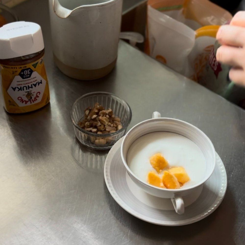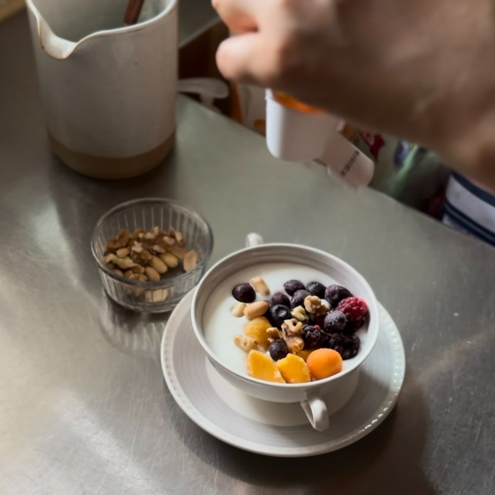물론 냉동 과일에 당분이 있긴하나 약간 밋밋하다 싶으면 마누카 꿀을 휘휘 뿌려주세요! 건강한 달달함에, 맛도 최고랍니다.