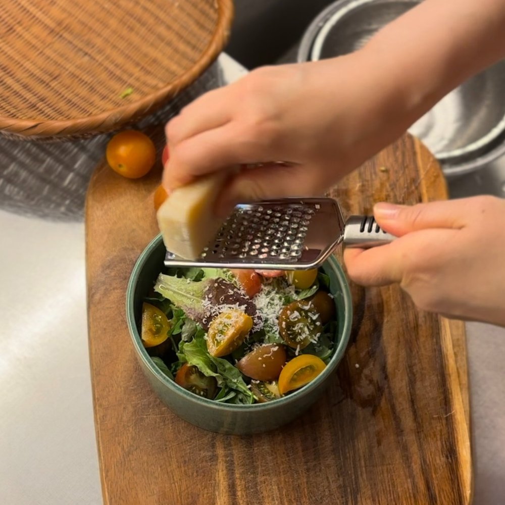 마지막에 고다 치즈를 눈 내리는 것처럼 솔솔 뿌려주면 맛과 비쥬얼 모두 군침 도는 건강한 샐러드 완성입니다.