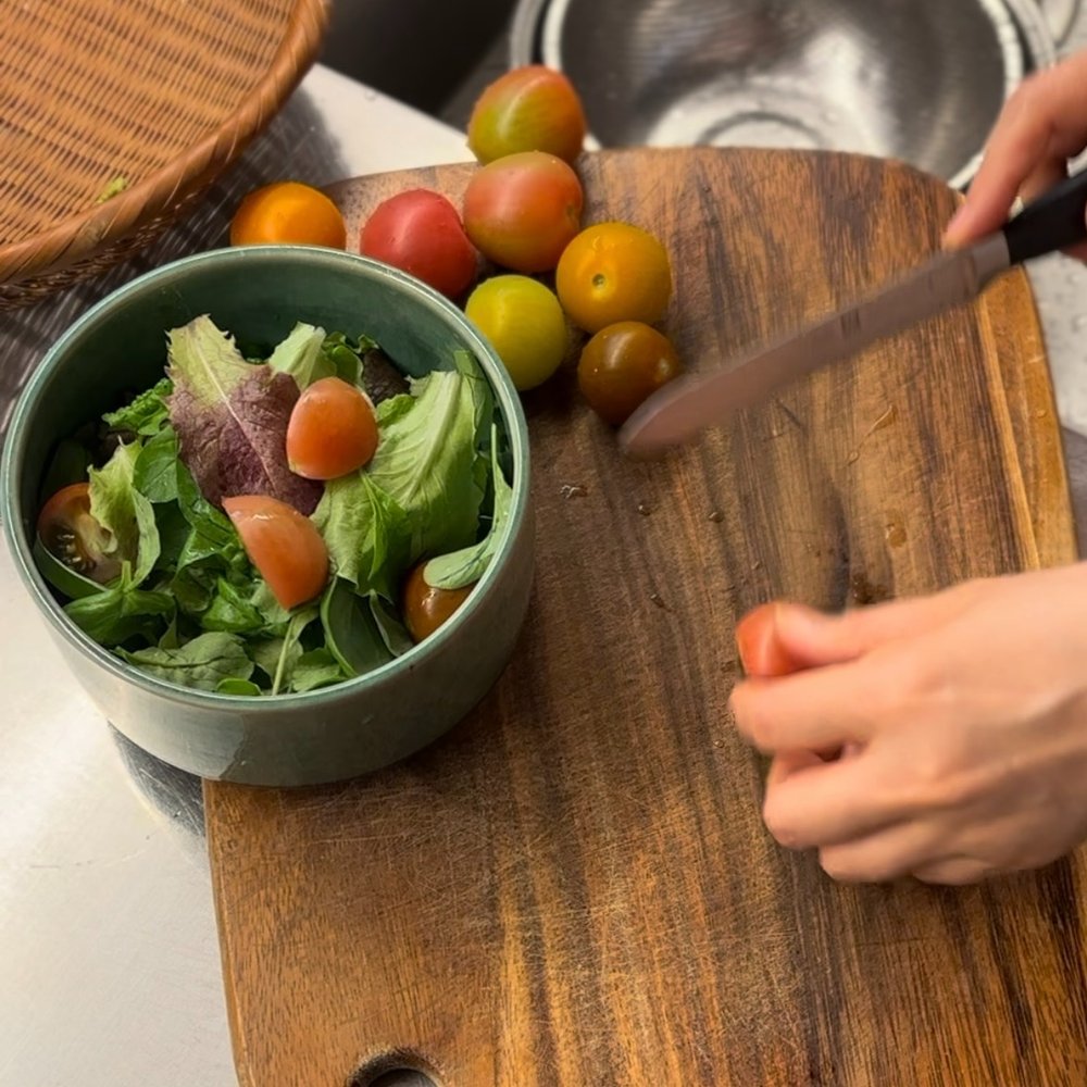 이제는 베란다 텃밭에서 수확한 상추와 루꼴라, 바질 등 초록 잎 채소에 토마토, 올리브, 견과류 등을 넣어줍니다. 특히 칵테일 토마토는 이름만큼이나 색도 다양해서 보는것만으로도 눈이 즐거워요.