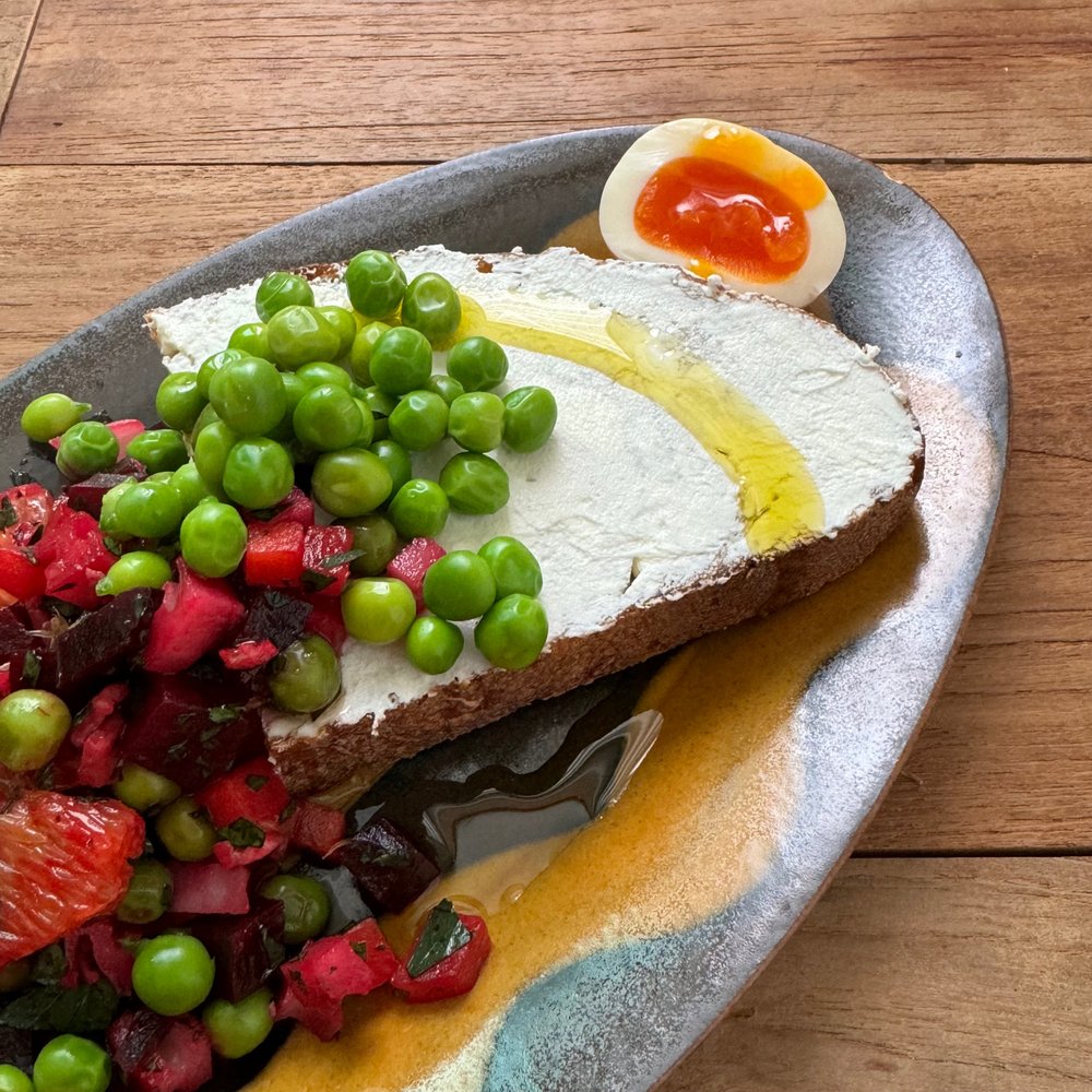 몸에 좋은 익힌 당근, 아삭아삭한 연근, 은은단 단맛이 착 감기는 비트⋯ 각자 채소의 식감을 살려 조리한 채소를 시트러스와 소금으로 한데 묶어 먹는 기쁨이 가득해요. 완두콩이 제철인 지금, 다양한 변주로 나만의 채소 살사를 만들 수 있는 점도 좋고요.