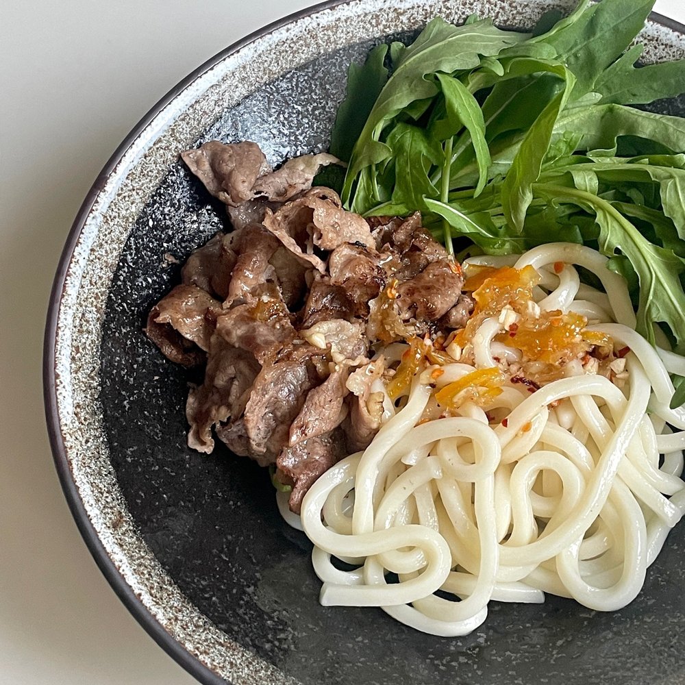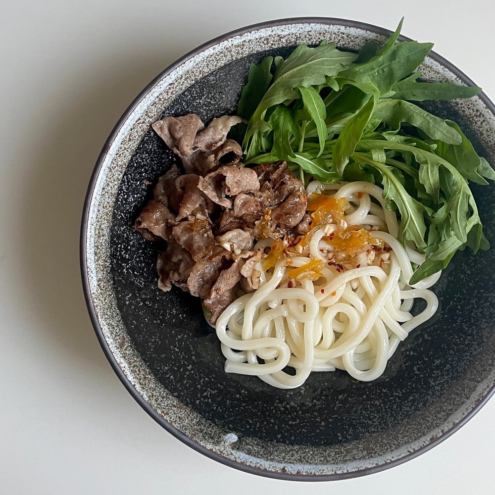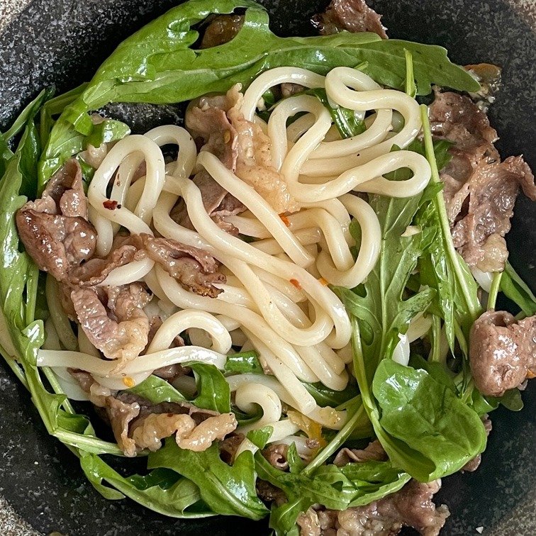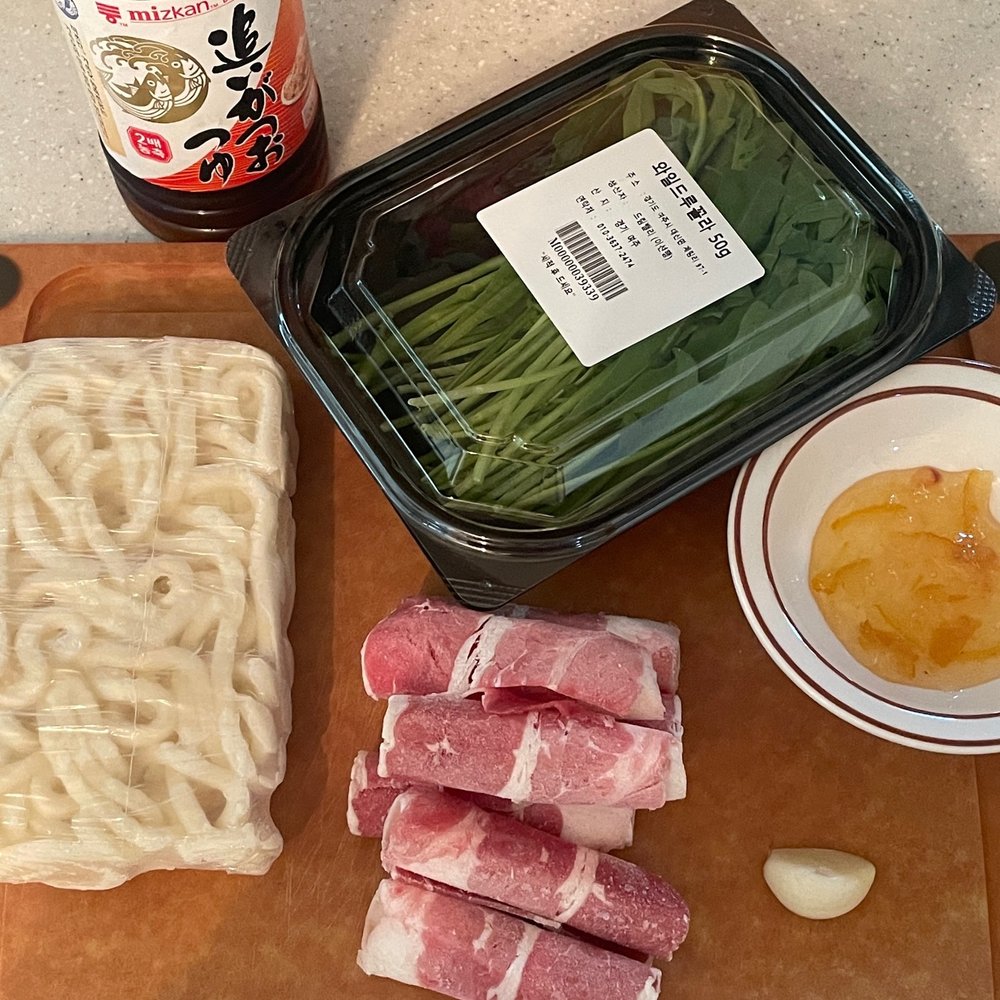 오래 삶을 필요도 없이 끓는 물에 1분 정도만 삶아 얼음물에 헹궈 쯔유만 부어 먹어도 맛있지만, 차돌과 루꼴라, 한 끗 재료인 유자청을 넣은 소스를 더해 더 맛있게 즐겨봐요!