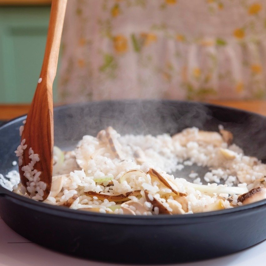 솥밥은 익숙하지만, 프라이팬으로 밥을 짓는다는 건 다소 생소하셨을 거예요. 찬밥과 재료를 볶아서 만드는 볶음밥과 달리 모든 재료의 맛이 하나하나 살아 있고, 쌀에 고스란히 맛이 스며든다는 장점이 있죠!