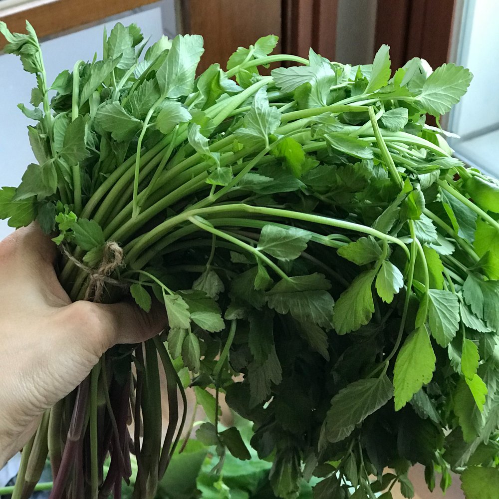 3. 미나리는 대 부분만 송송 썰어둔다.