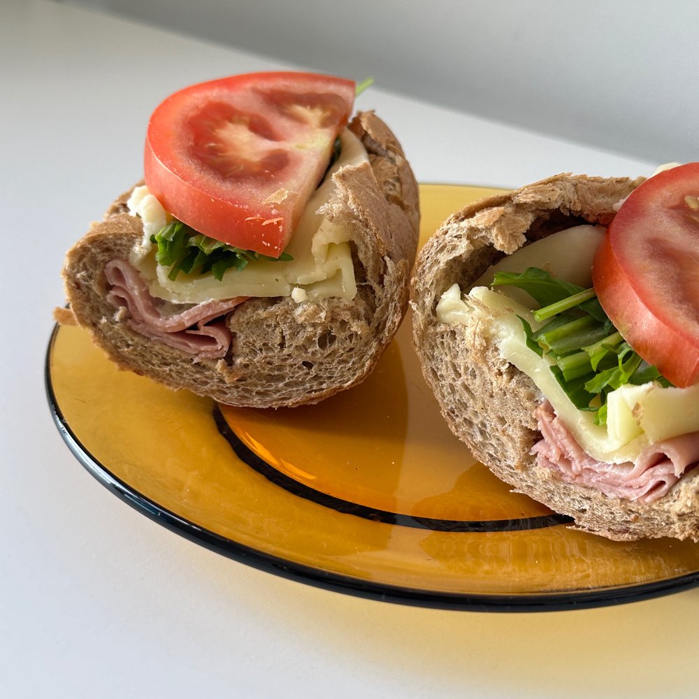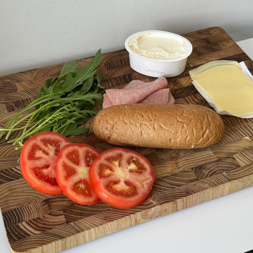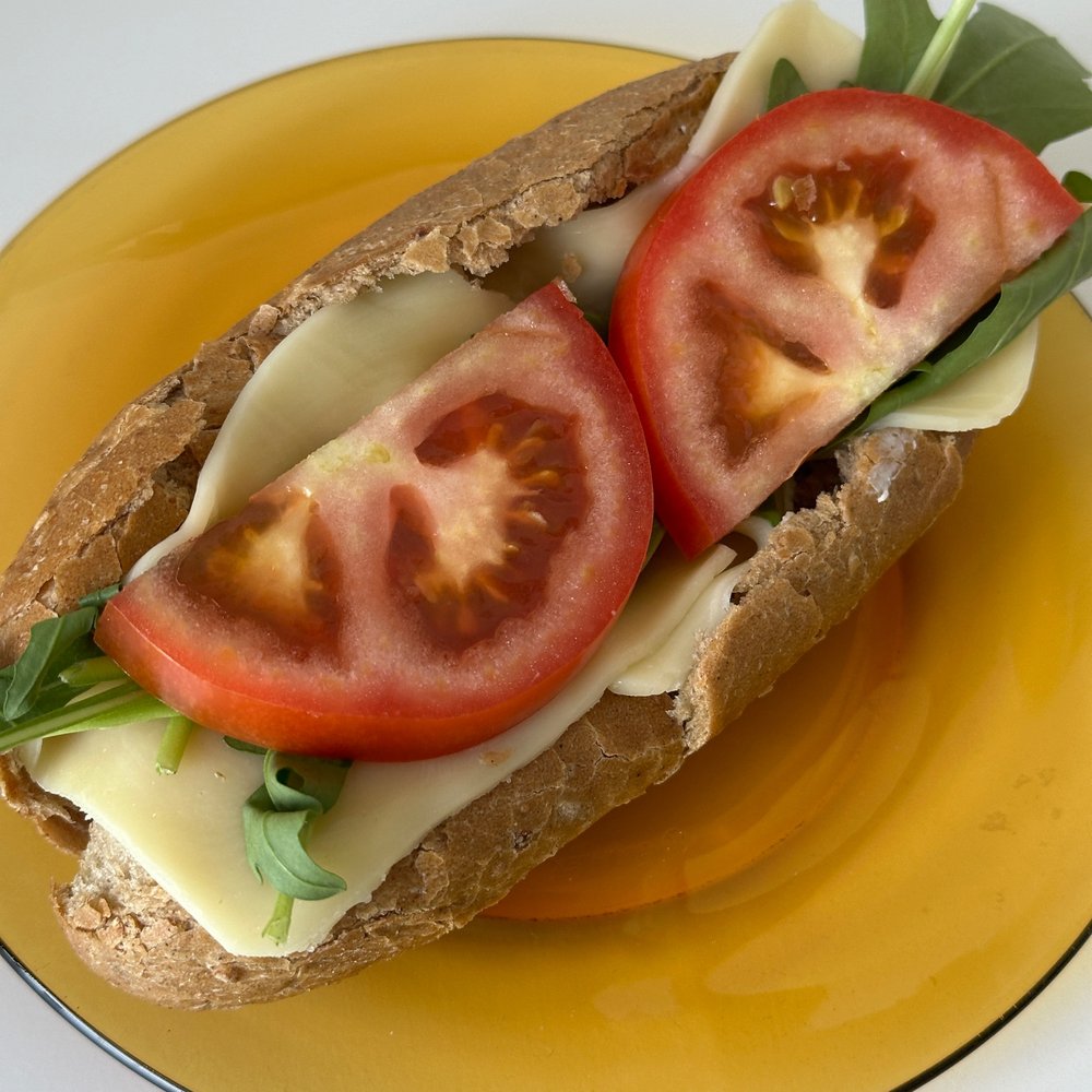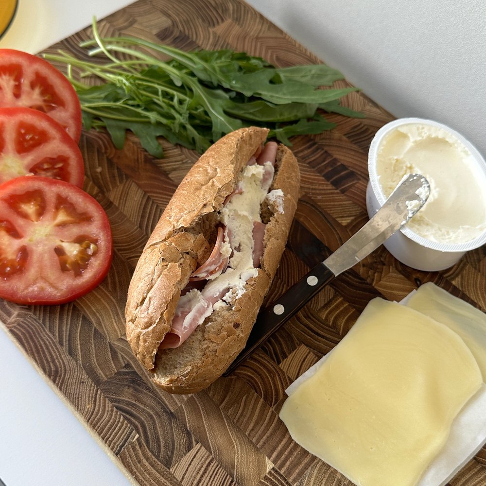 겉이 바삭해진 호기브레드 배를 갈라 햄을 구겨 넣듯이 밀어 넣고 크림치즈를 듬뿍 발라줘요. 크림치즈 두께가 두꺼워질수록 행복도 커진답니다. 그다음 치즈 두 장과 루꼴라 한 움큼을 넣고, 마지막으로 큼직한 토마토를 얹어줘요. 크게 베어 물고 씹으면 씹을수록 모든 재료의 맛이 차례차례 천천히 다가오니 즐겨 보세요!