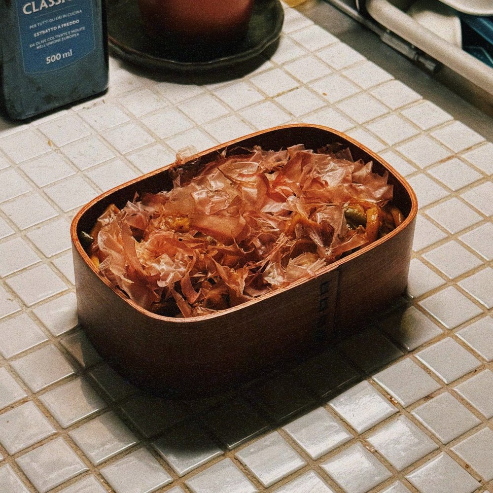 이번 요리 과정 중에서 가장 인상 깊었던 장면은 마지막 가쓰오부시를 뿌리는 순간이었어요. 별것 아닌 것 같아도 가쓰오부시의 댄싱~을 보니까 일본 심야식당에서 온 듯한 느낌이 물씬 나더라고요!