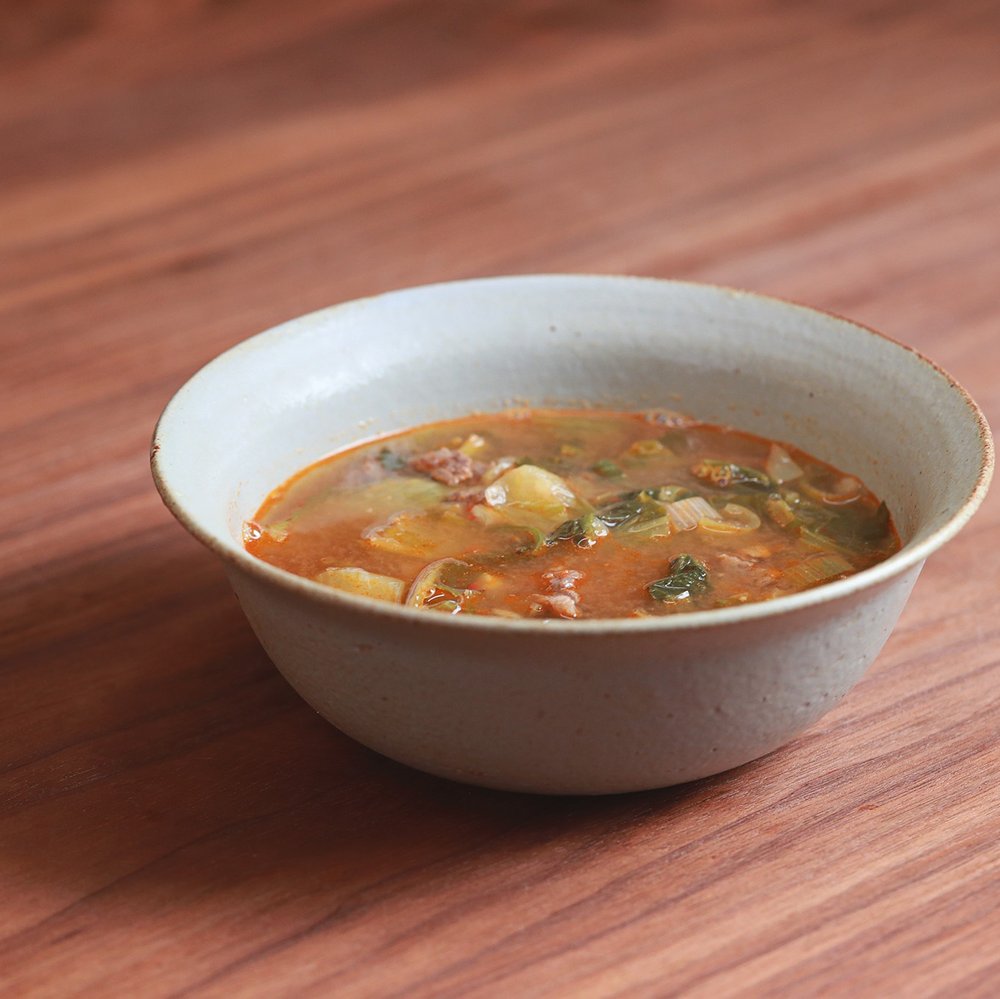 얼큰하면서 속이 확 풀리는 얼갈이 된장국입니다. 멸치 다시마 육수를 내주면 맛이 정말 좋아요. 된장은 집 된장 사용했어요.