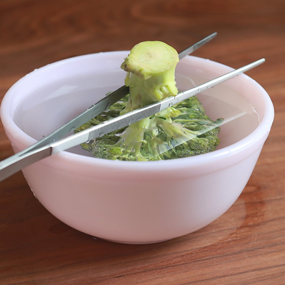 1, 브로콜리 한 송이를 깨끗하게 씻어 송이를 잘라주고, 브로콜리 줄기도 썰어주세요.