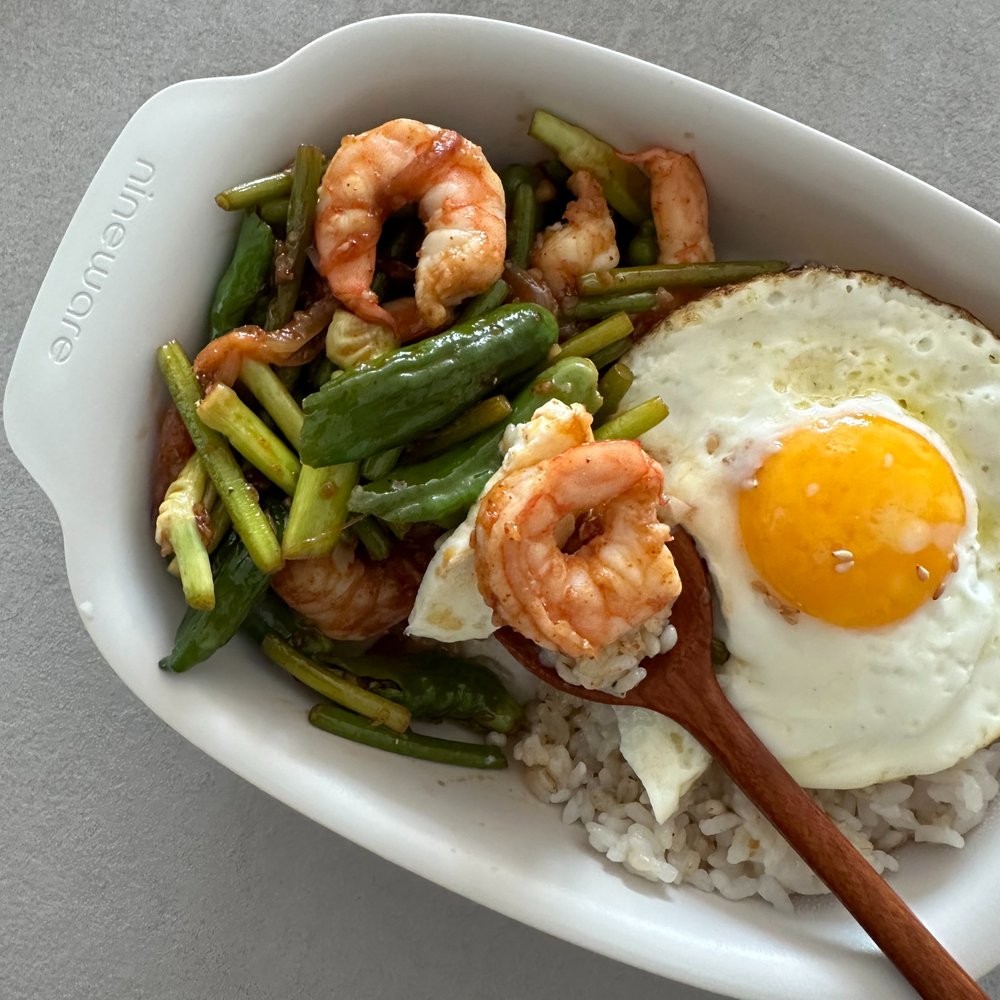 3. 매콤달콤 마늘종 새우볶음 덮밥