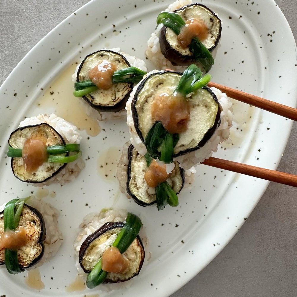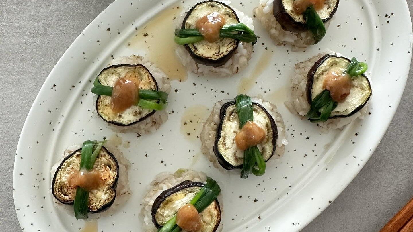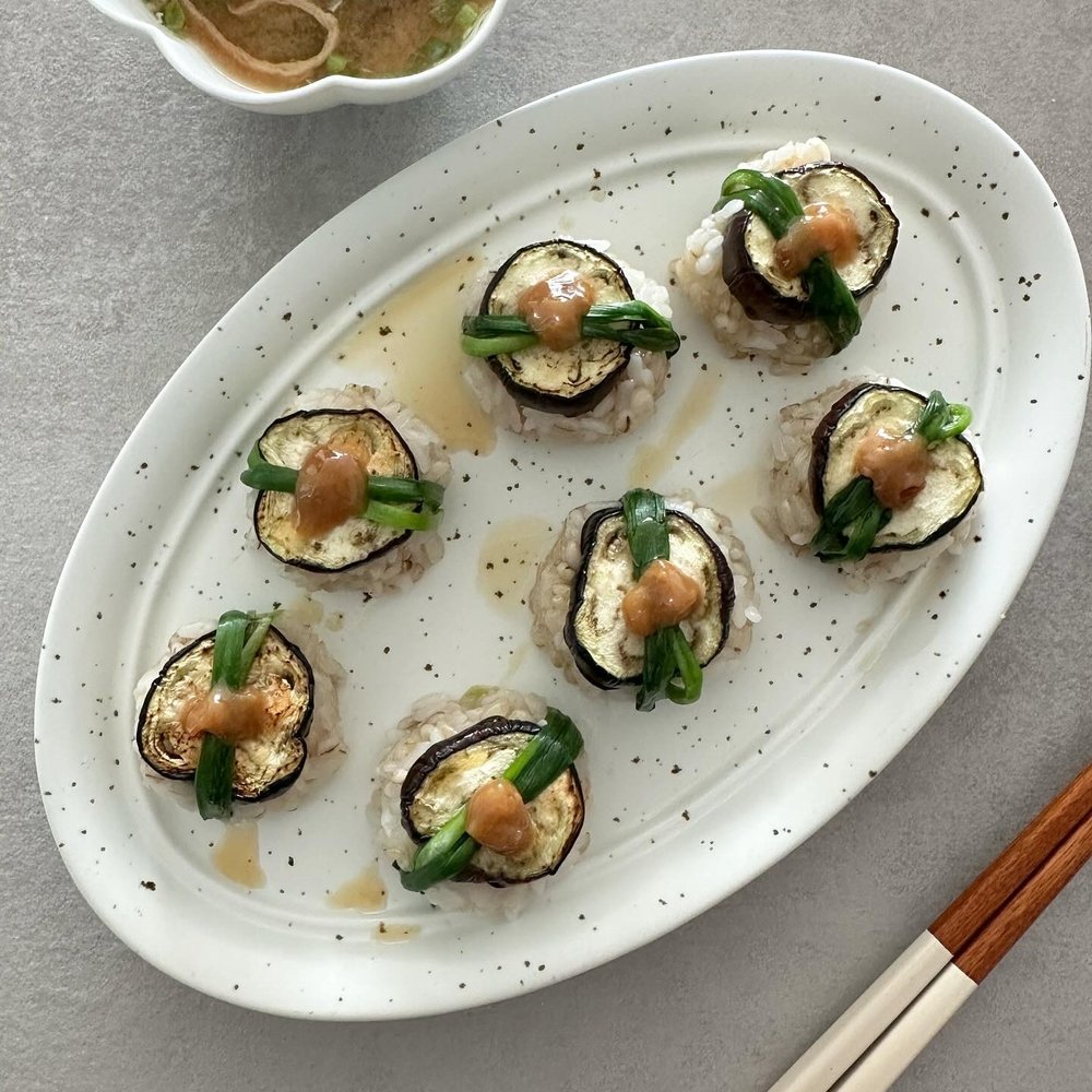 가지 굽굽해 달콤 부드러운 된장마요 소스 얹어 세상 처음 맛보는 비건 가지 초밥 어떠세요?!