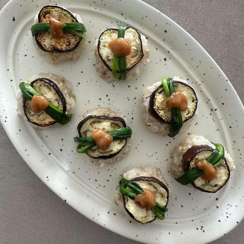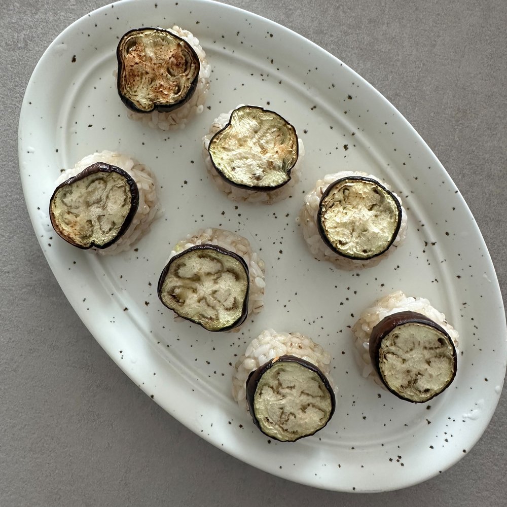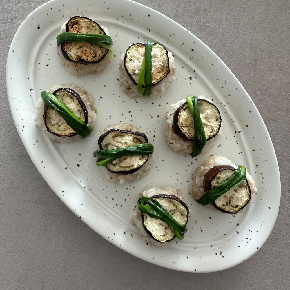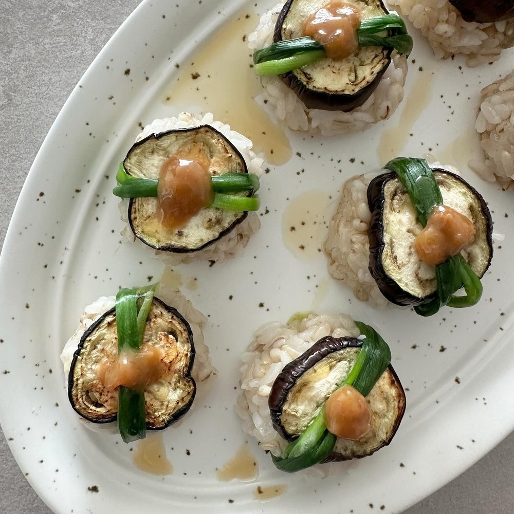 가지 굽굽해 달콤 부드러운 된장마요 소스 얹어 세상 처음 맛보는 비건 가지 초밥 어떠세요?!