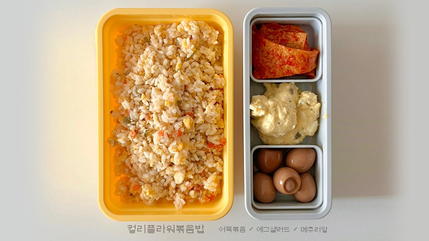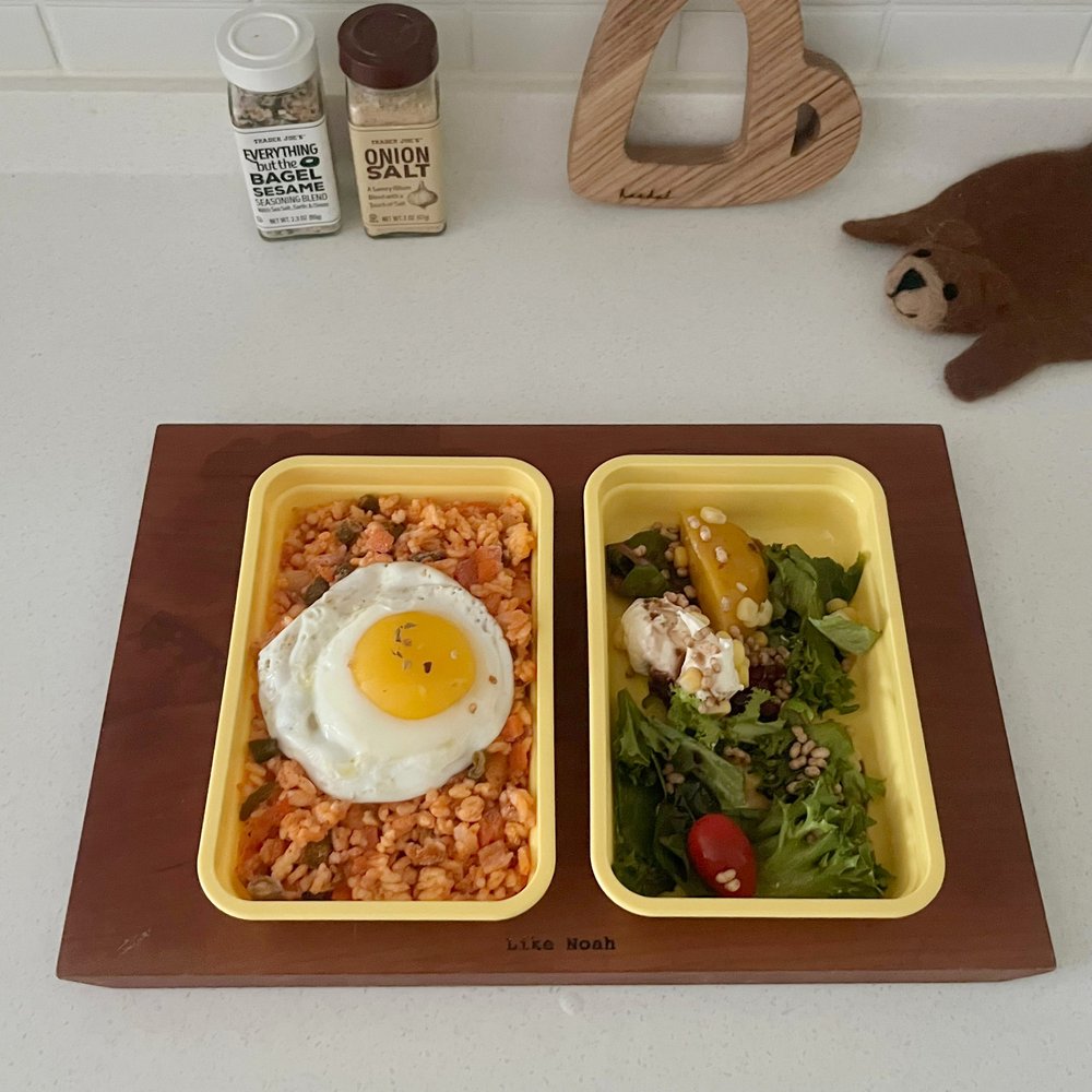 회의가 많고 복잡한 문서를 봐야 하는 날, 점심 많이 먹으면 졸려서 더 집중 안 되는 기분 뭔지 아시죠? 그런 날은 평소보다 가벼운 한 끼를 먹으려고 곤약 볶음밥을 챙겨요. 볶음밥만으로 챙기기 어려운 단백질은 계란후라이 하나 반숙으로 만들어 톡 올려주고요. 싱싱한 샐러드를 곁들여 식이섬유 섭취와 포만감도 놓치지 않았어요.