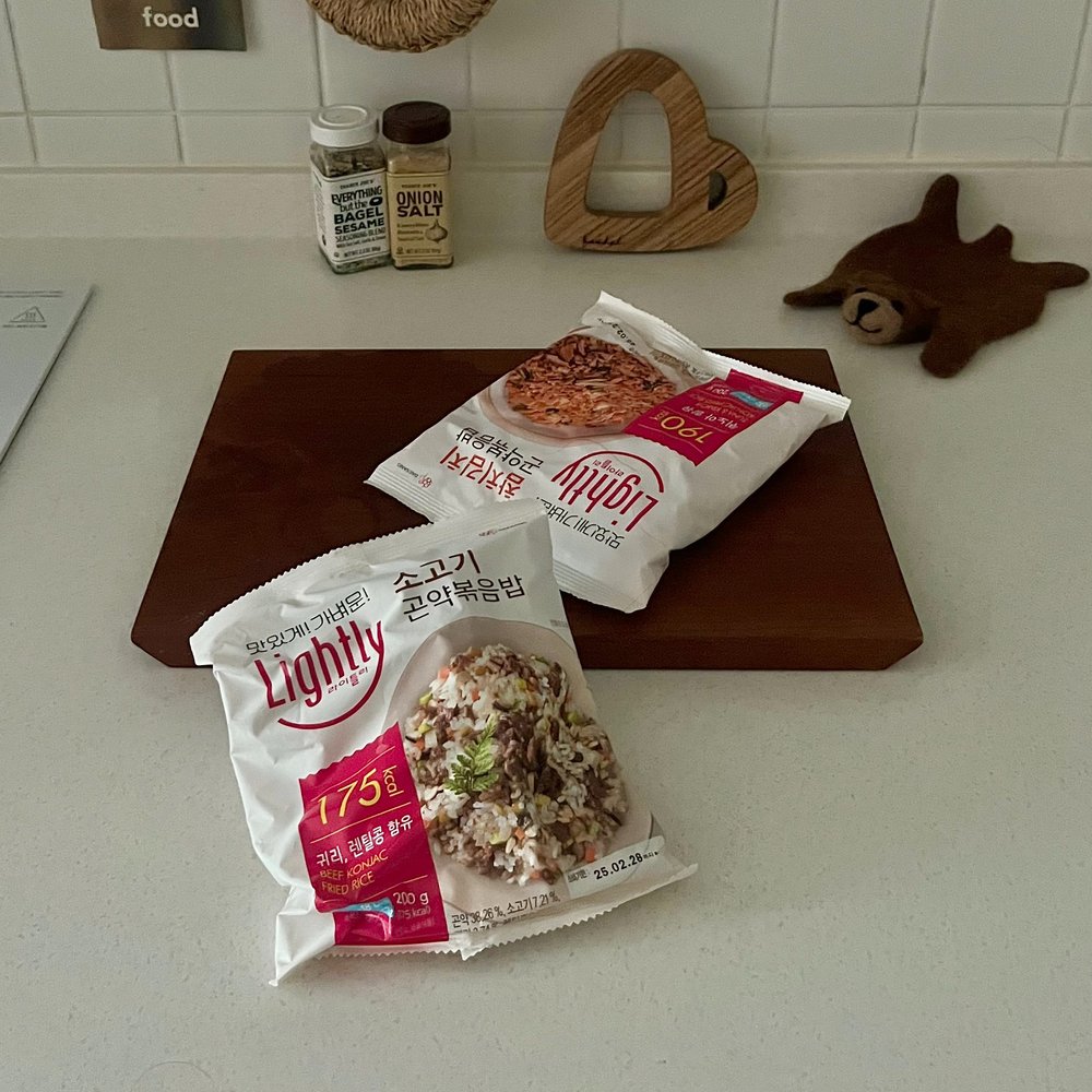 - 곤약 볶음밥: 라이틀리 곤약볶음밥을 전자레인지 용기에 옮겨 담기 (1분, 회사에서 전자렌지에 돌리면 돼요)