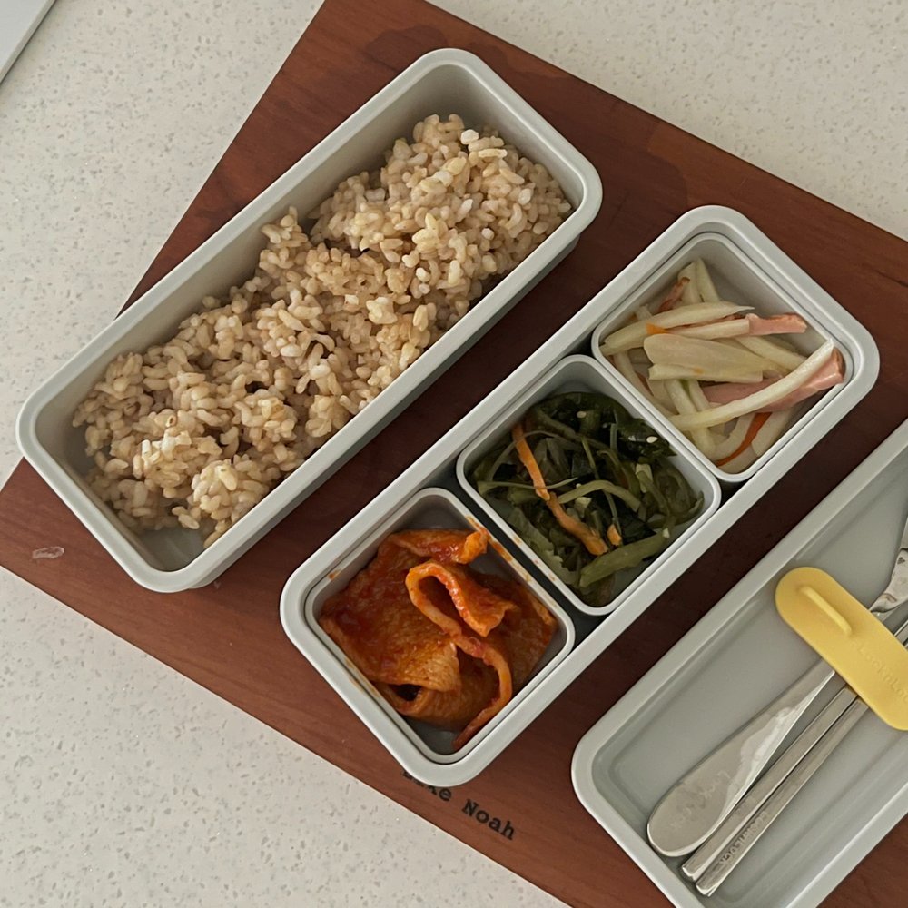 도시락이라고 해서 절대 부실하지 않아요. 배불리 먹고 싶은 그런 날이면, 집에서 만들어 둔 현미밥을 양껏 담아준 뒤 입맛을 돋우는 집 반찬 3가지를 챙겨가요. 3팩을 세트로 파는 컬리의 반찬을 사면, 최소 다섯 번에 걸쳐 나눠 먹을 수 있더라고요.