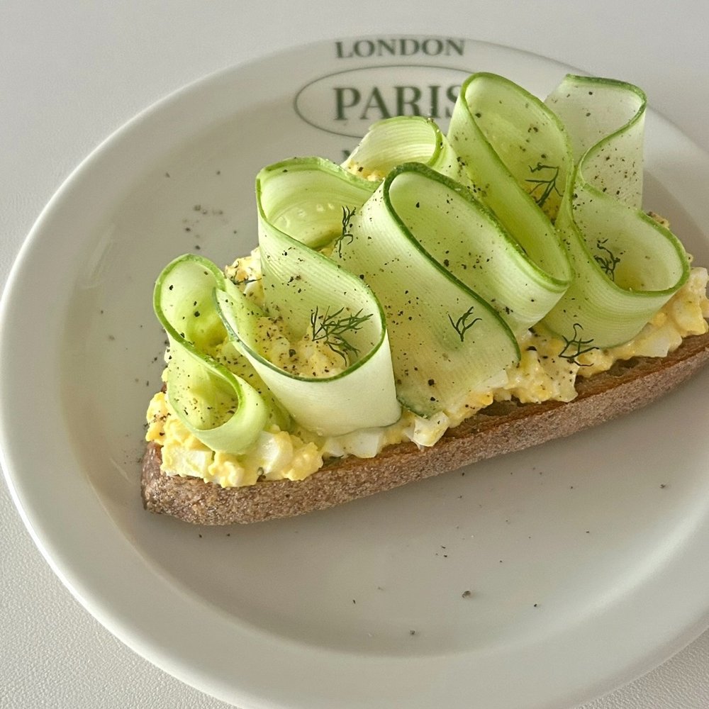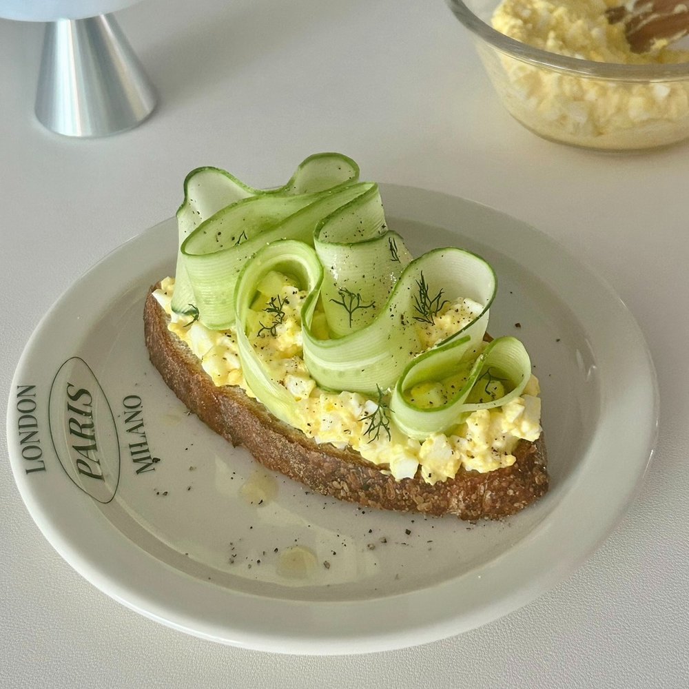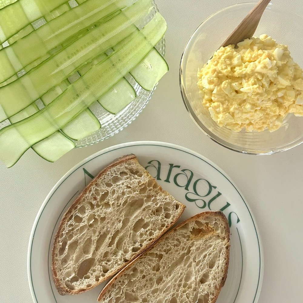 에그마요 듬뿍~! 슬라이스한 절인 오이를