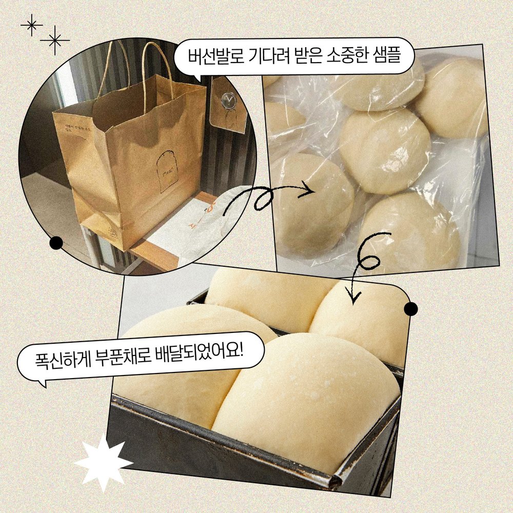 ‘당일 생산한 가장 맛있는 빵만 내보낸다!’는 밀도 전익범 세프님의 철칙에 따라, 절대 미리 샘플을 보내주시는 법이 없거든요. 촬영일 마다 샘플이 제때 도착하지 못할까봐 마음 졸이며 기다리곤 하지만, 그만큼 폭신한 빵결이 살아있는 빵을 만날 수 있답니다. 이것이 바로, 갓 구운 듯 먹음직스러운 사진이 나오는 비결! 🤗