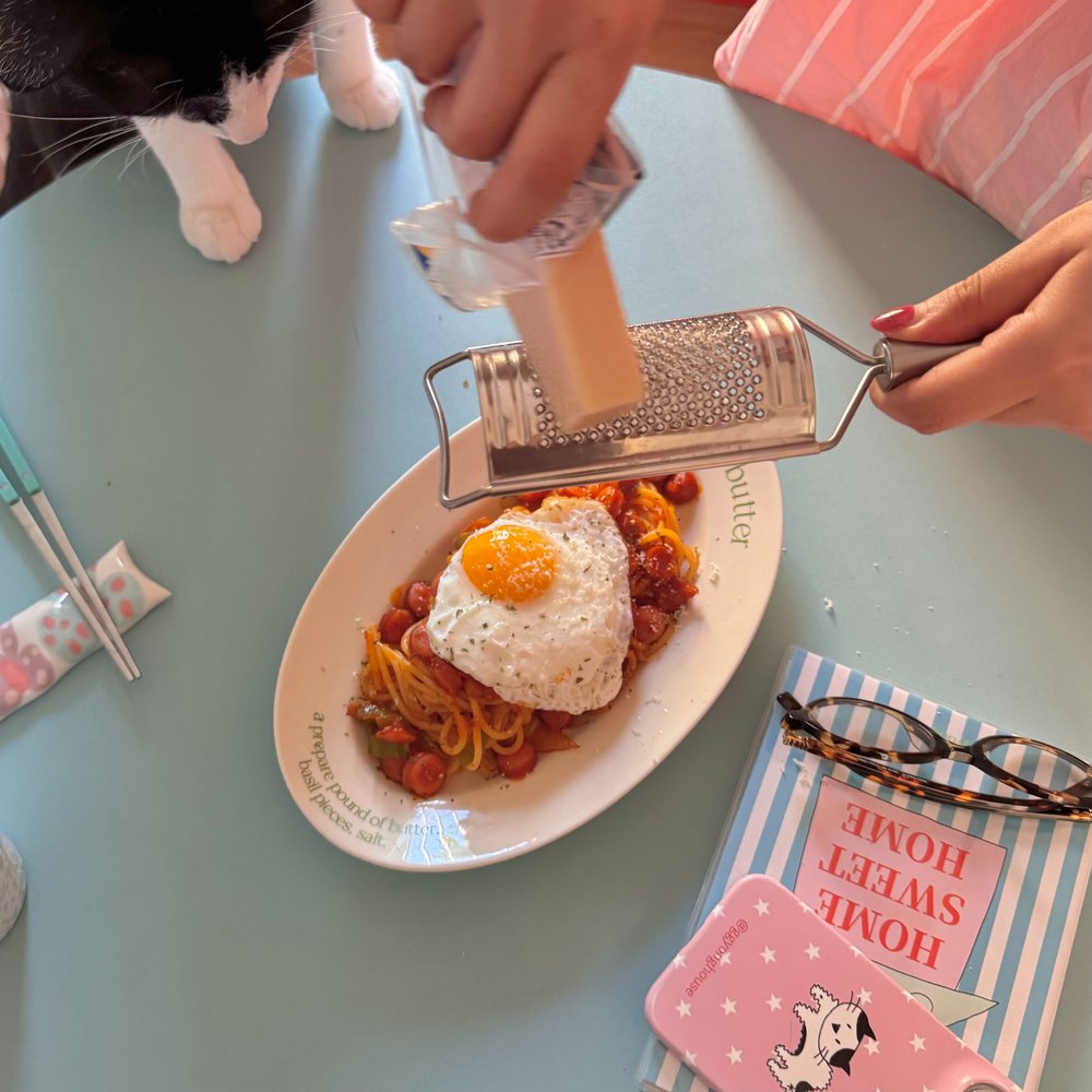 오늘은 제가 요즘 푹 빠져있는 나폴리탄 파스타를 해 먹었어요! 완성된 파스타 위에는 파르미지아노 레지아노 치즈를 챱챱 갈아서 뿌려 마무리하면 풍미에 비주얼까지 노릴 수 있답니다 :)