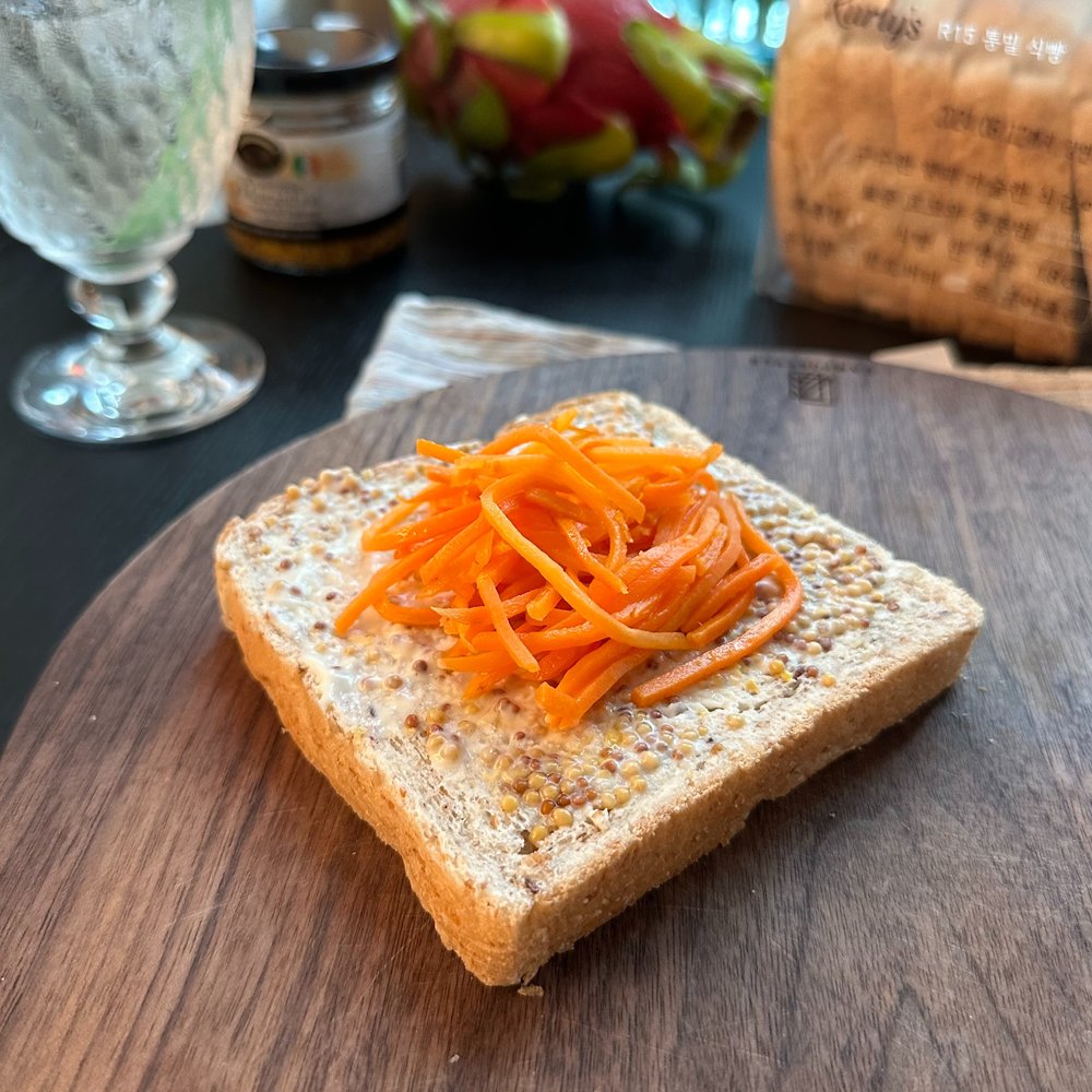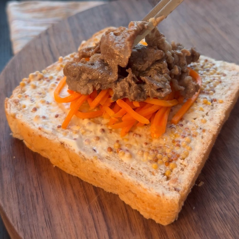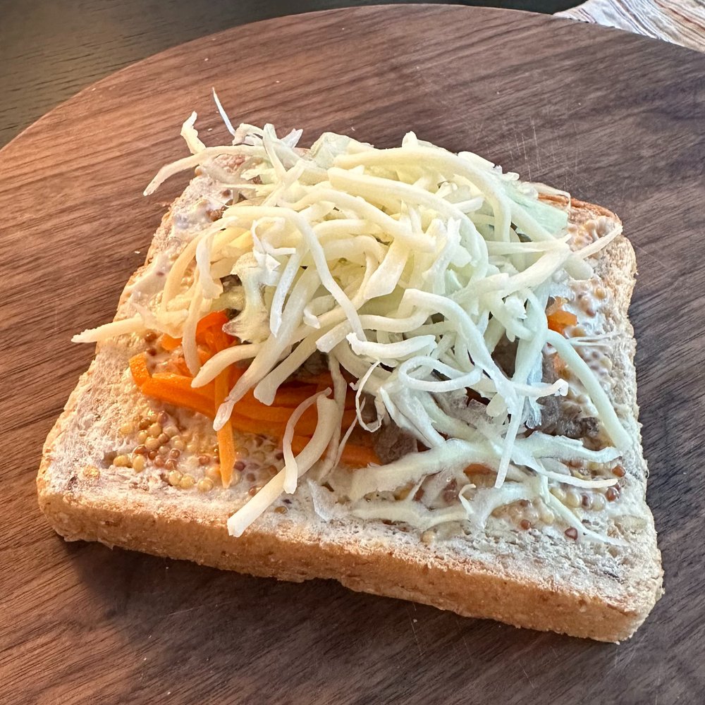 재료 | 호밀빵, 불고기, 당근, 양배추, 모차렐라 치즈, 마요네즈, 홀그레인 머스터드