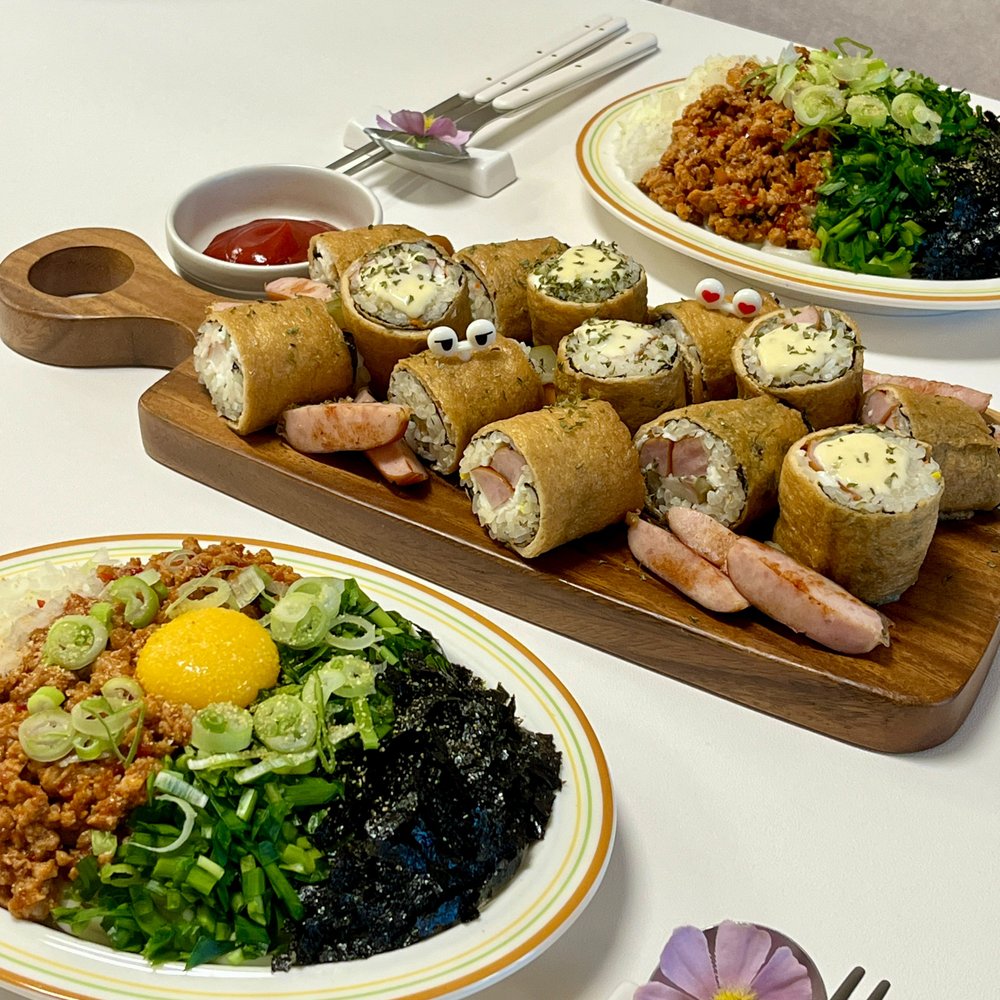 마제소바 위에 노른자 올리고 난 뒤 남은 흰자 버리지 마시고 롤 유부초밥에 활용하세요!