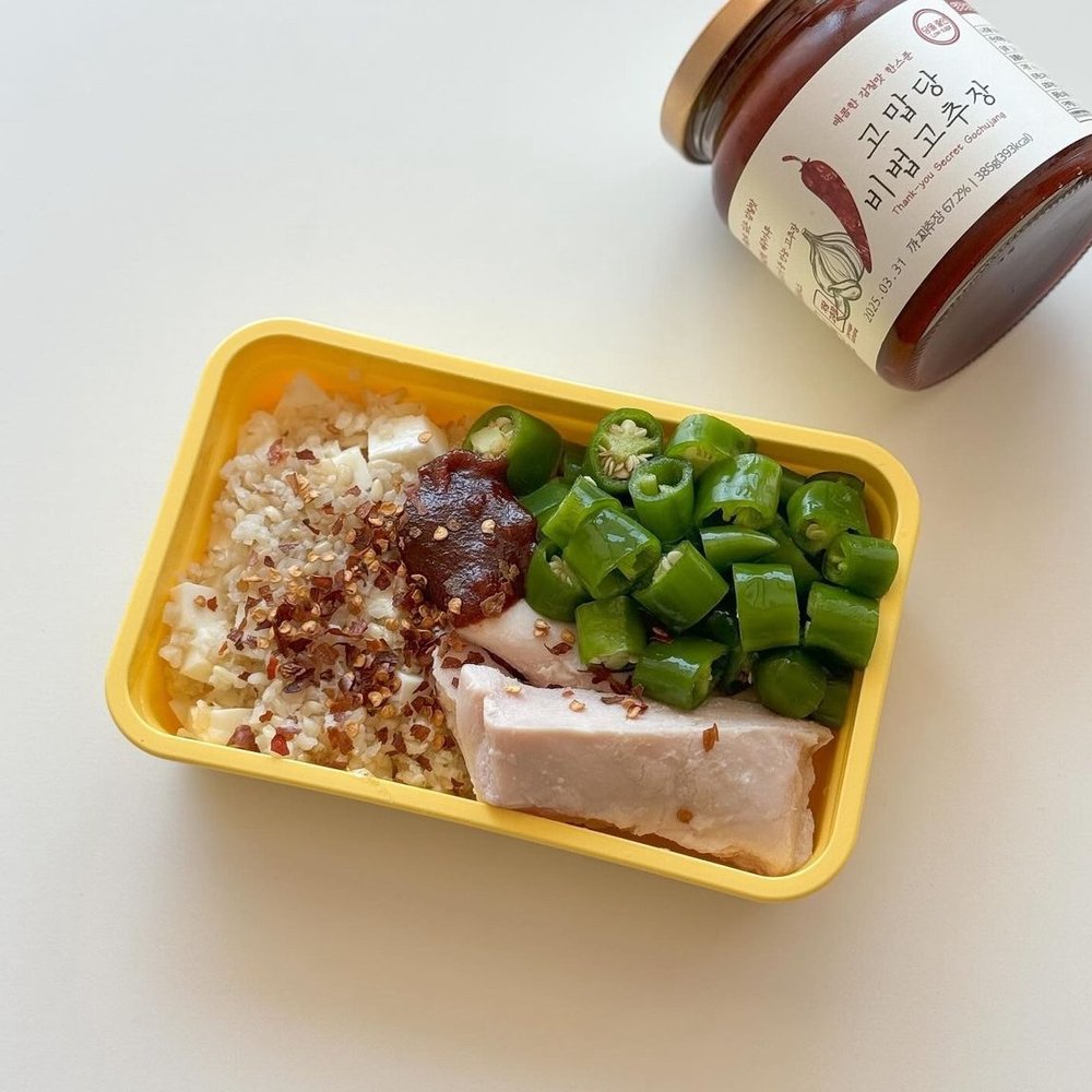 📍 저당 고추장이나 저당 쌈장을 활용하여 오이고추 비빔밥으로 먹으면 더 맛있으니, 저당으로 알차게 활용해서 맛있는 다이어트 비빔밥으로 드셔보세요!