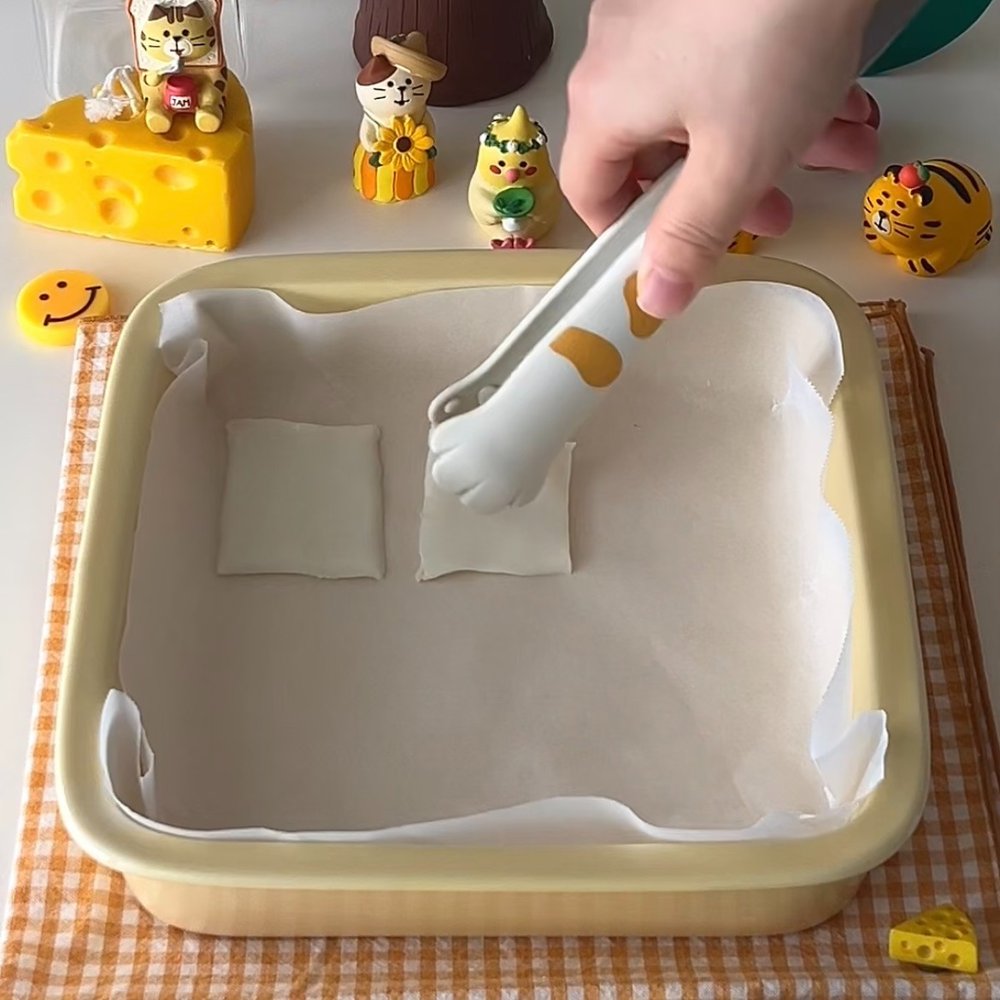 2. 종이 호일 위에 간격을 두며 치즈를 올려주고 치즈 크기에 맞게 김을 잘라 올려주세요