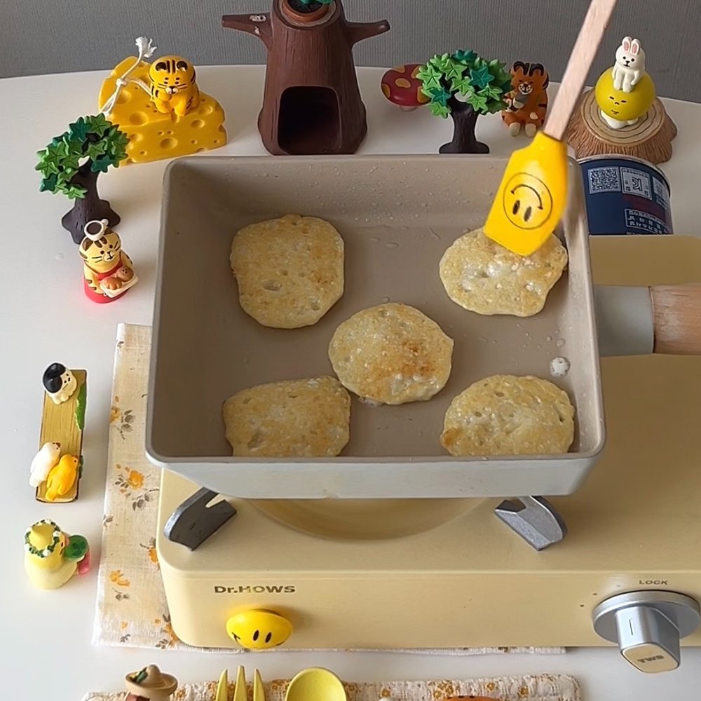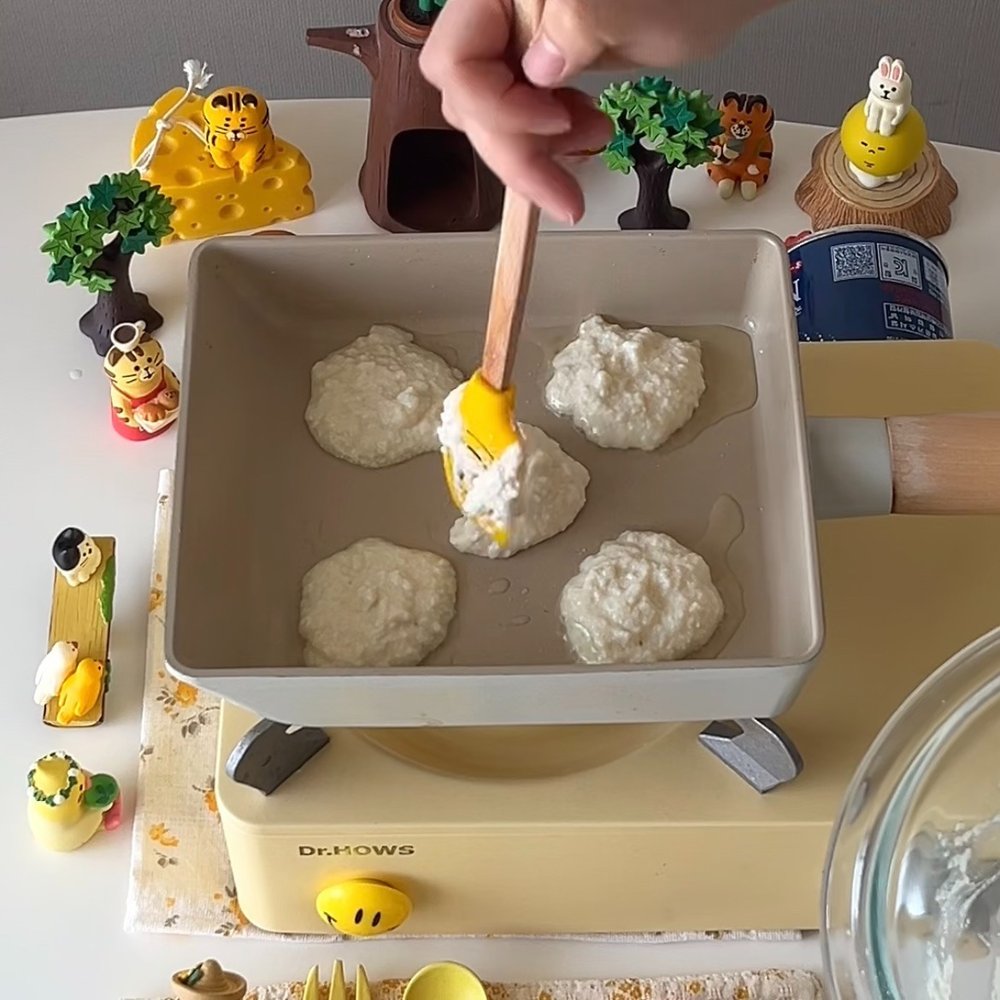 2. 팬에 기름을 둘러준 뒤 순두부 반죽을 올려 앞뒤로 노릇하게 구워주면 완성
