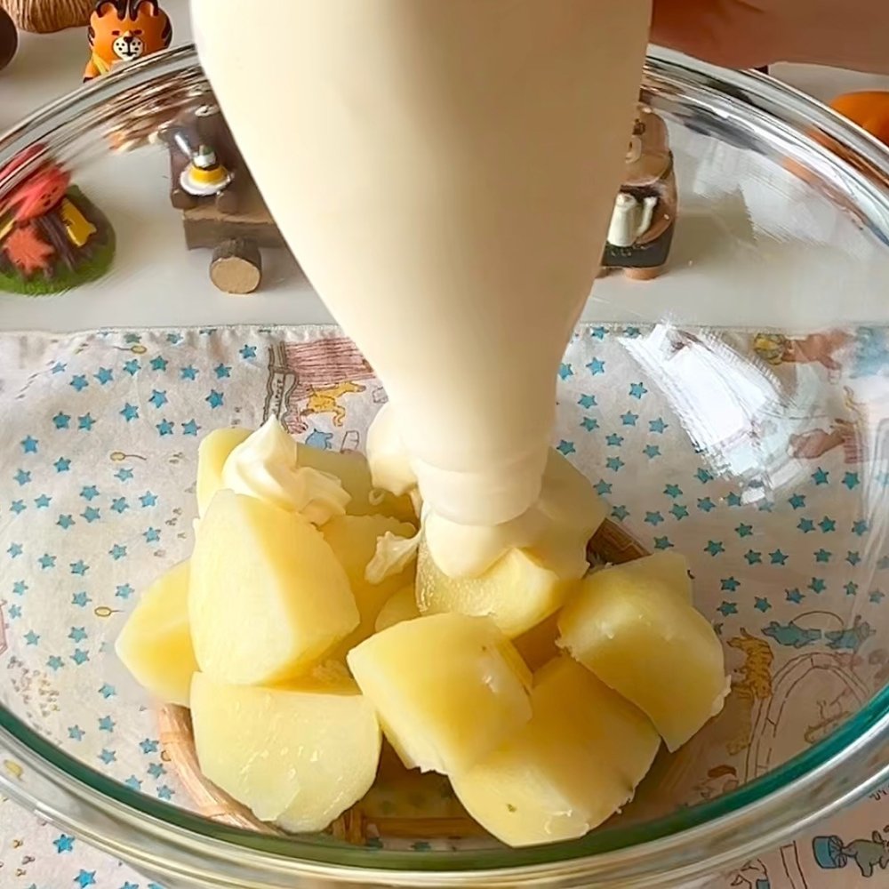 2. 삶은 감자 3개에 마요네즈 4T 볶은 스팸 소금 1T 후추를 넣고 잘 섞어주세요