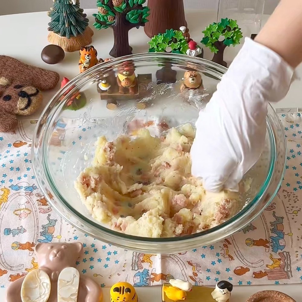재료 : 감자 3개, 마요네즈 4T, 스팸, 대파, 소금, 후추, 라이스페이퍼, 콩가루, 흑임자 가루 ⠀