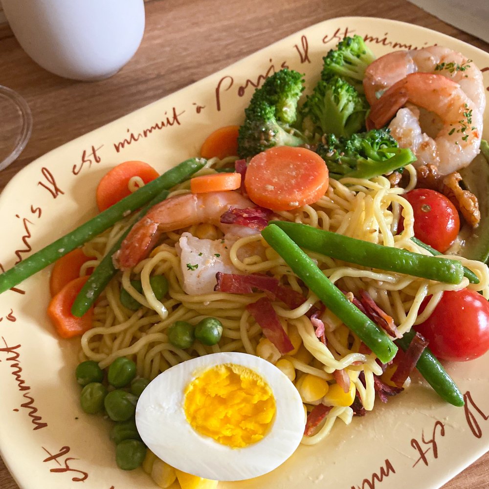 특히 튀기지 않은 생면이라 깔끔하고, 그린빈스 / 브로콜리 / 당근 때문에 식감도 좋고 비주얼도 훌륭한 게 장점이에요.