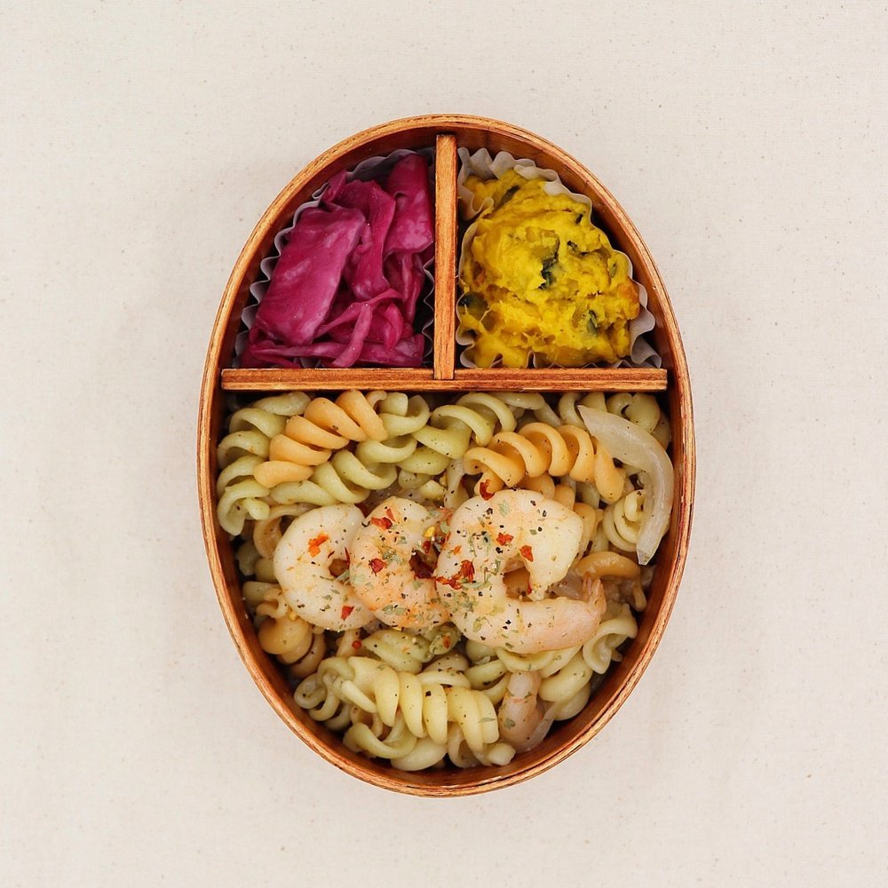 집에서는 스파게티나 링귀니 같은 긴 파스타 면으로 많이 요리하지만, 상대적으로 잘 붇지 않고 먹기도 편리하다는 장점 때문에 도시락에는 숏 파스타를 사용하는 것을 선호합니다.