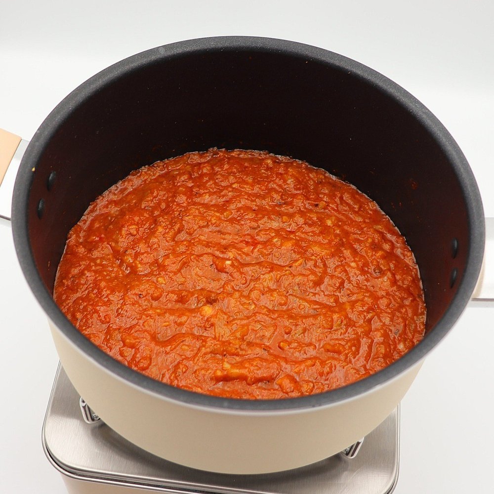 - 소스를 한 번에 다 사용하지 않는다면 잘 섞어서 사용해야 해요. 아니면 나중에 미트 없는 미트 소스가 될 수도 있어요! (보관하면서 고기 알갱이들이 위로 떠오른답니다)
