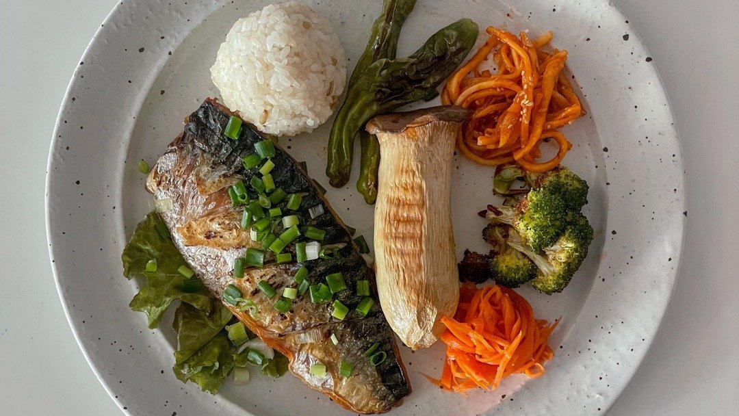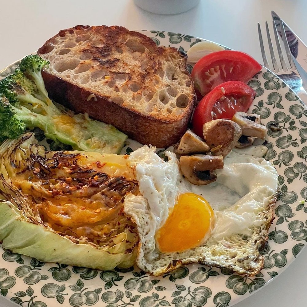 기분에 따라 프레시한 샐러드도 좋고, 구운 채소도 좋아요. 양배추, 브로콜리, 토마토 등을 올리브 오일에 소금, 후추만으로 구워도 그렇게 맛있더라고요.