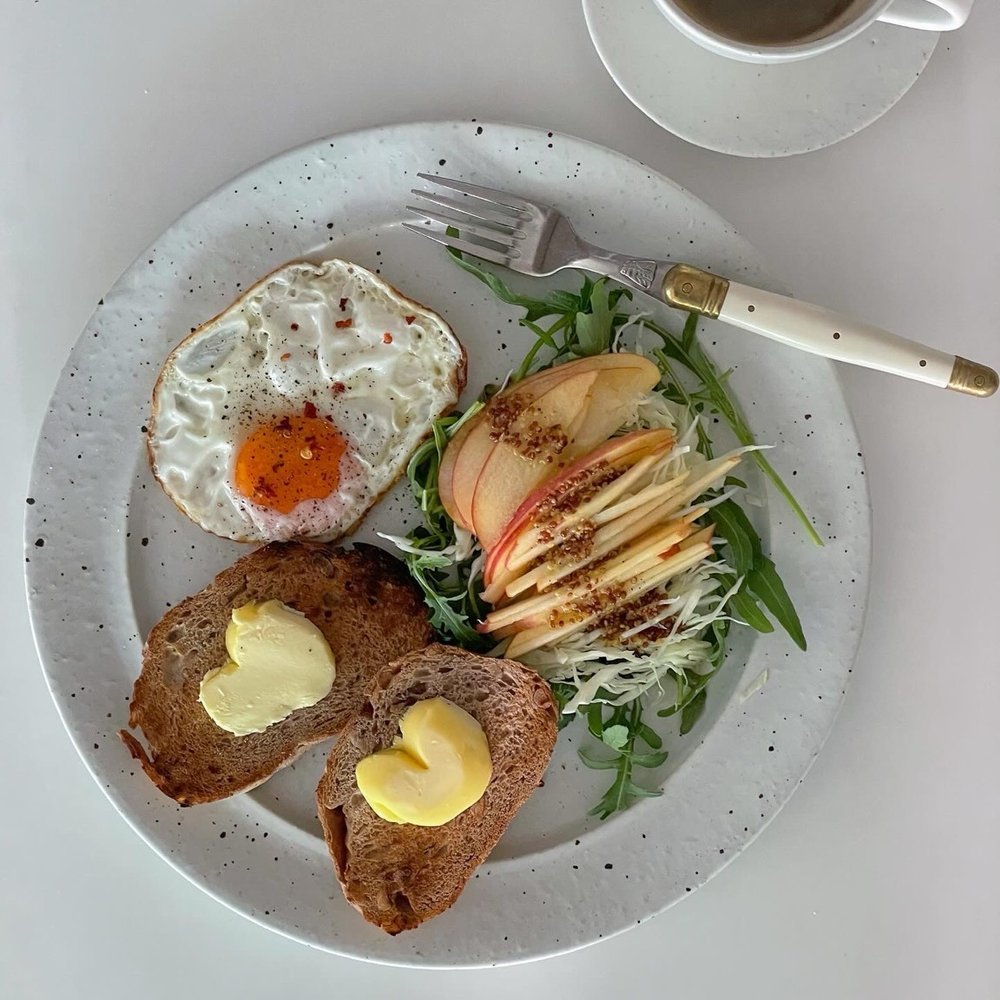 최대한 통밀빵, 사워도우로 선택해요. 토스트 해서 버터만 발라 먹는 걸 좋아해요.