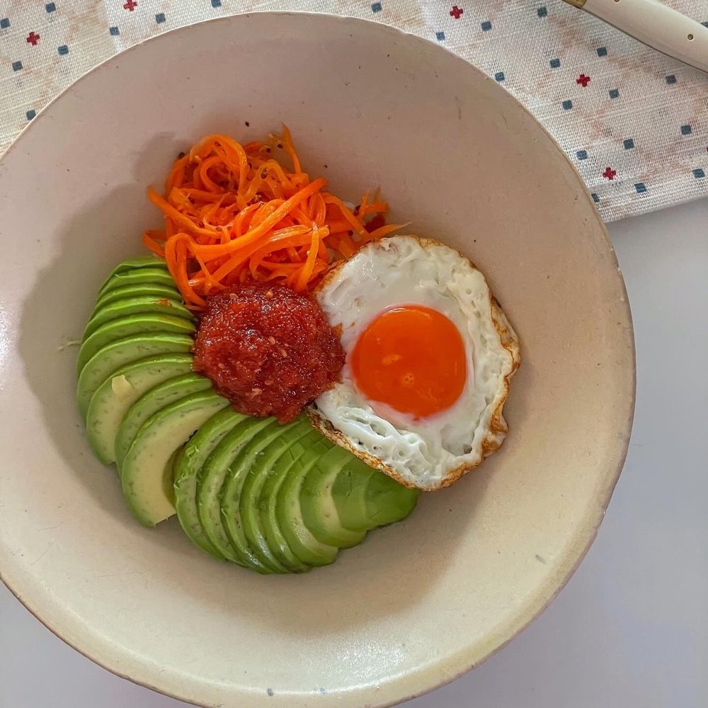 [재료] 청어알, 아보카도, 당근 라페, 계란
