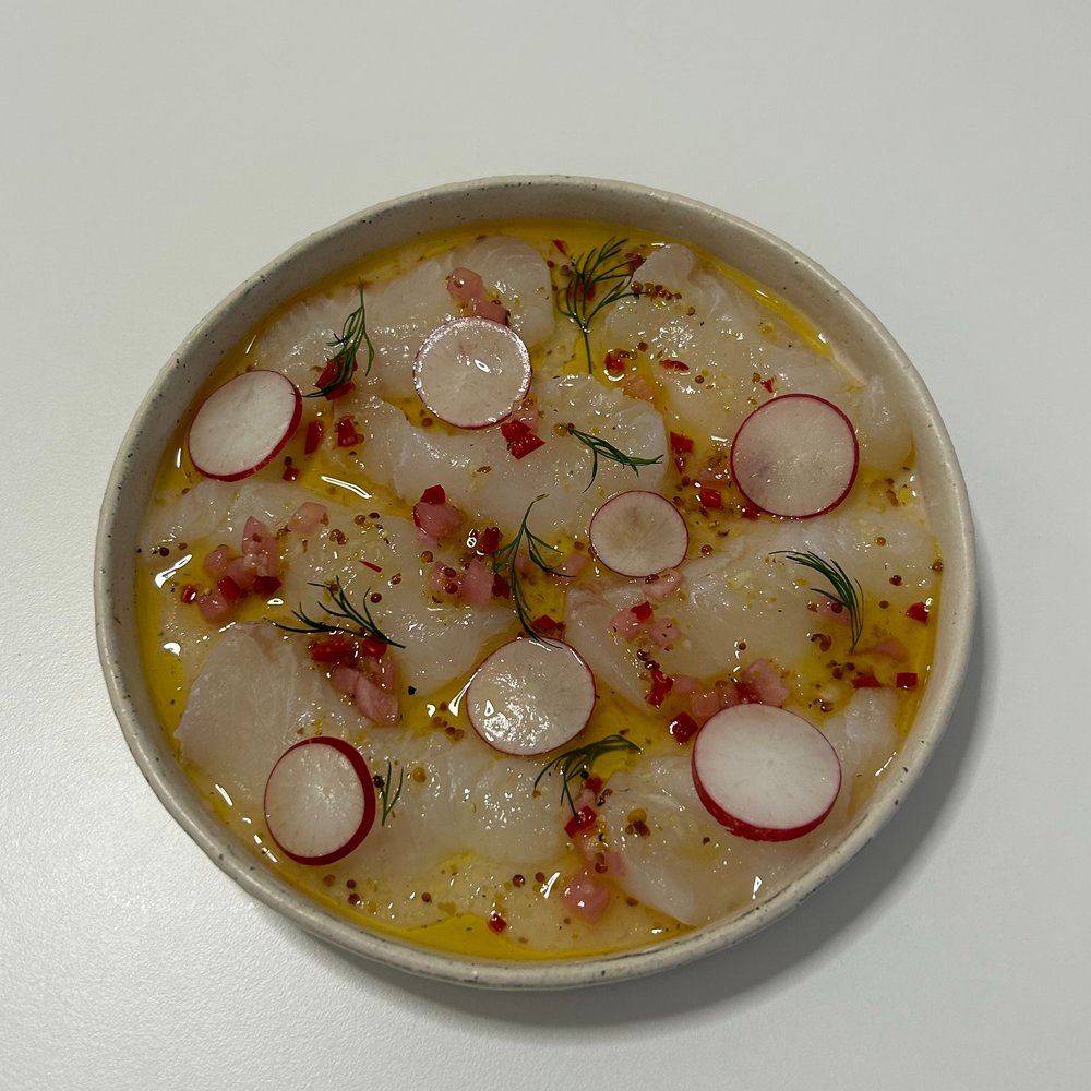 ✓ ‘래디시’와 ‘딜’이 플레이팅의 포인트예요. 광어 세비체는 딜과의 조합이 매우 좋고, 올리브유의 향긋한 향이 베이스가 되어 새콤달콤한 드레싱과 광어의 조화가 일품입니다.