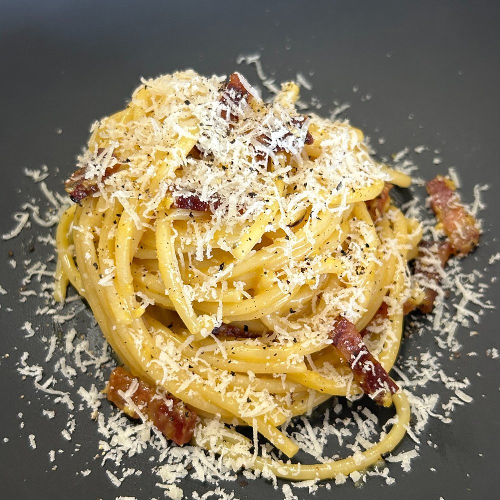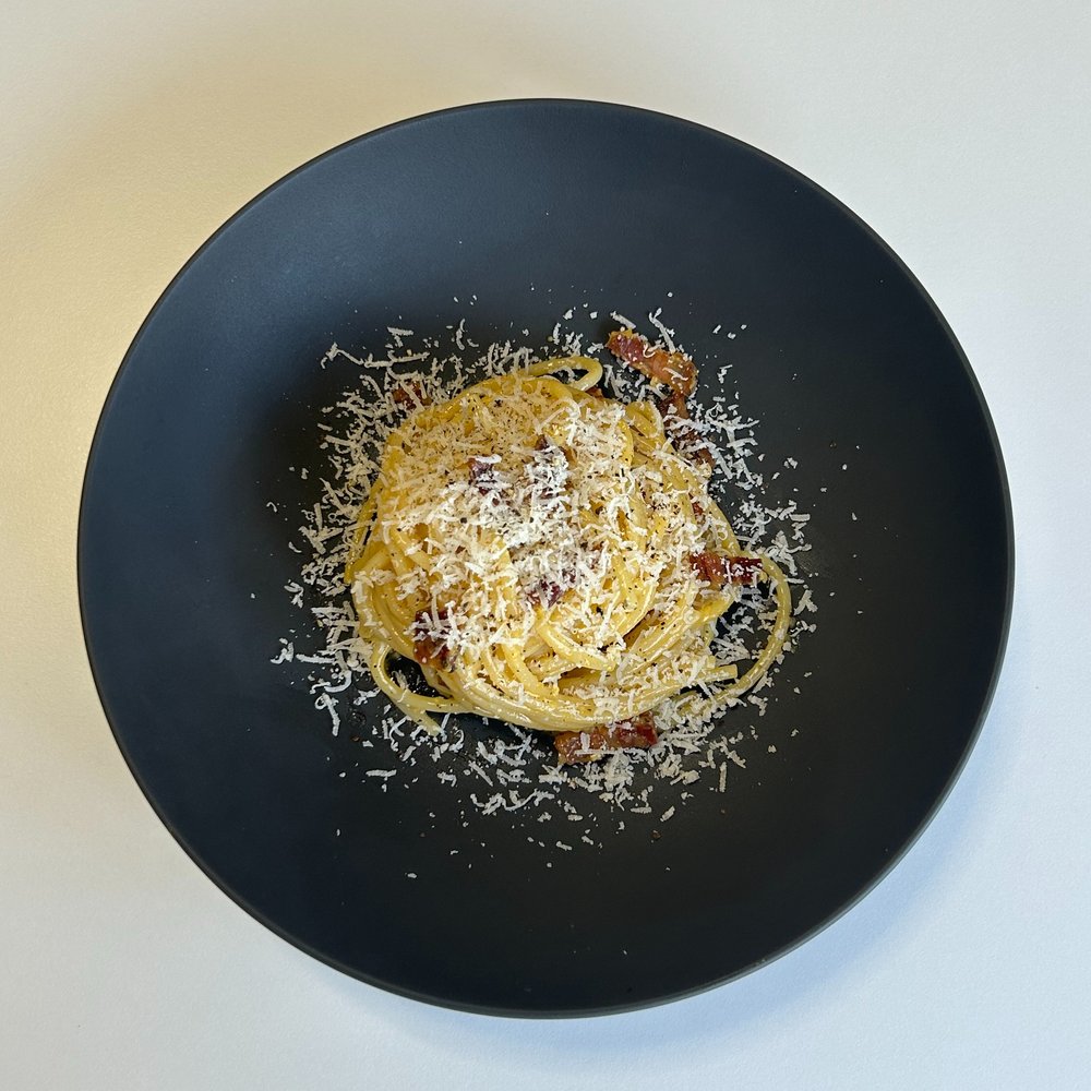 계란 노른자와 톡톡 튀는 흑후추, 풍미 가득한 치즈로 맛을 낸, 원재료의 매력 하나하나가 돋보이는 매력적인 음식이에요.