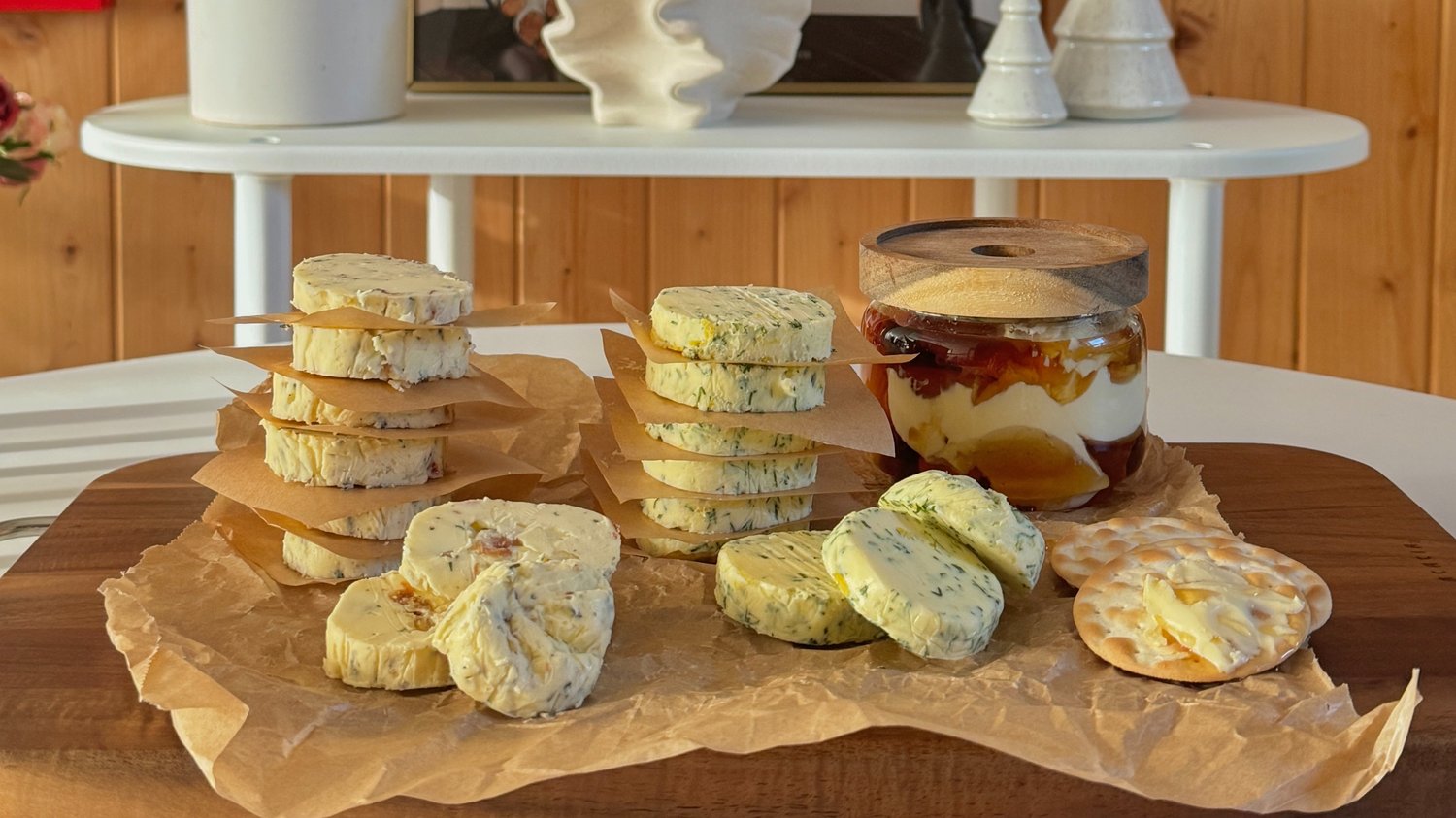5. 랩을 말아가며 원하는 모양으로 버터의 모양을 잡아준 뒤 냉동실에서 약 15분 정도 굳혀주면 완성!