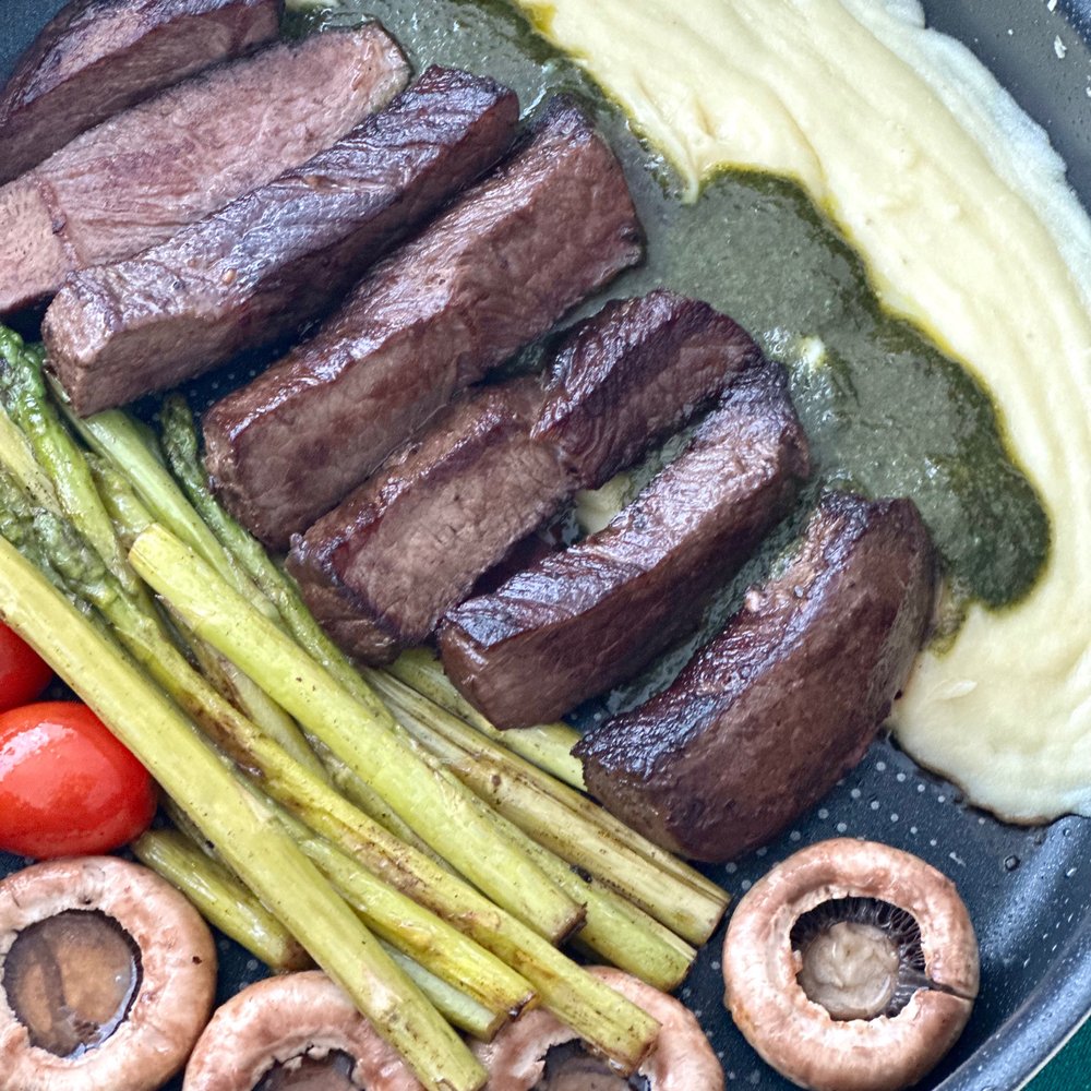 고기 상태가 일단 정말 좋았고, 냉동 상태라 냉장고에서 해동시킨 후 구워줬어요. 스테이크 자체에 시즈닝이 되어있어서 따로 시즈닝 할 필요가 없어서 더욱 편리하더라구요.